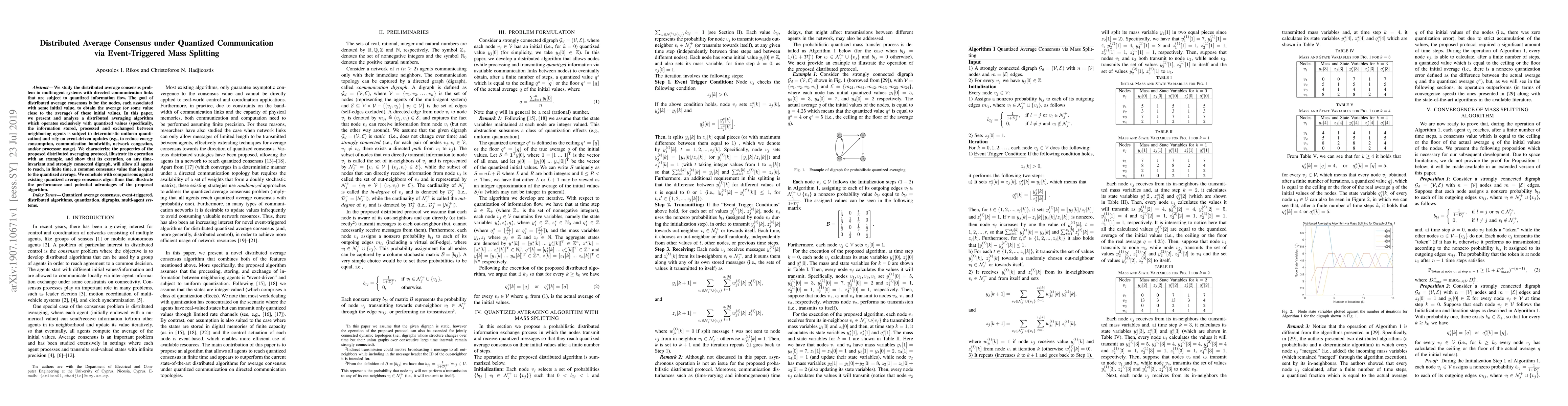 A novel approach to distributed average consensus using mass splitting is proposed.