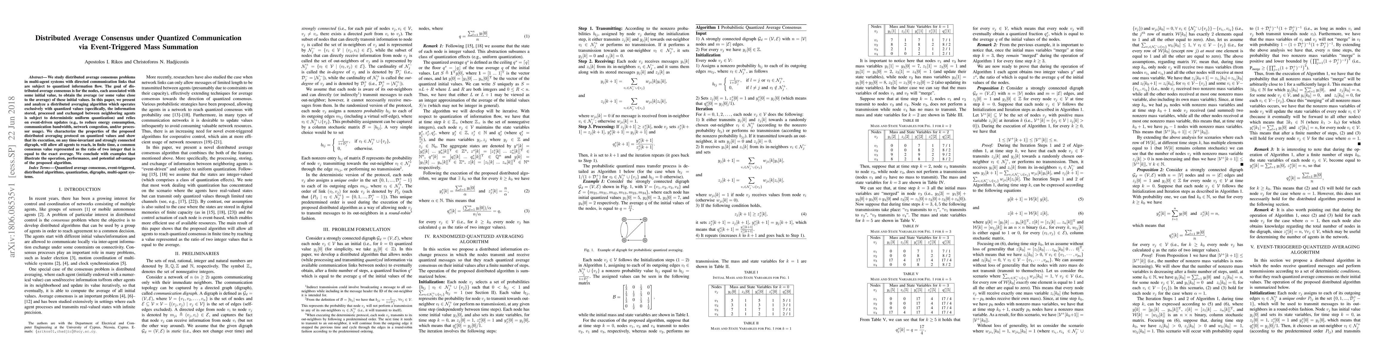 The paper presents a distributed averaging algorithm for multi-agent systems with directed communication links subject to quantized information flow, utilizing event-driven updates to reduce resource consumption.