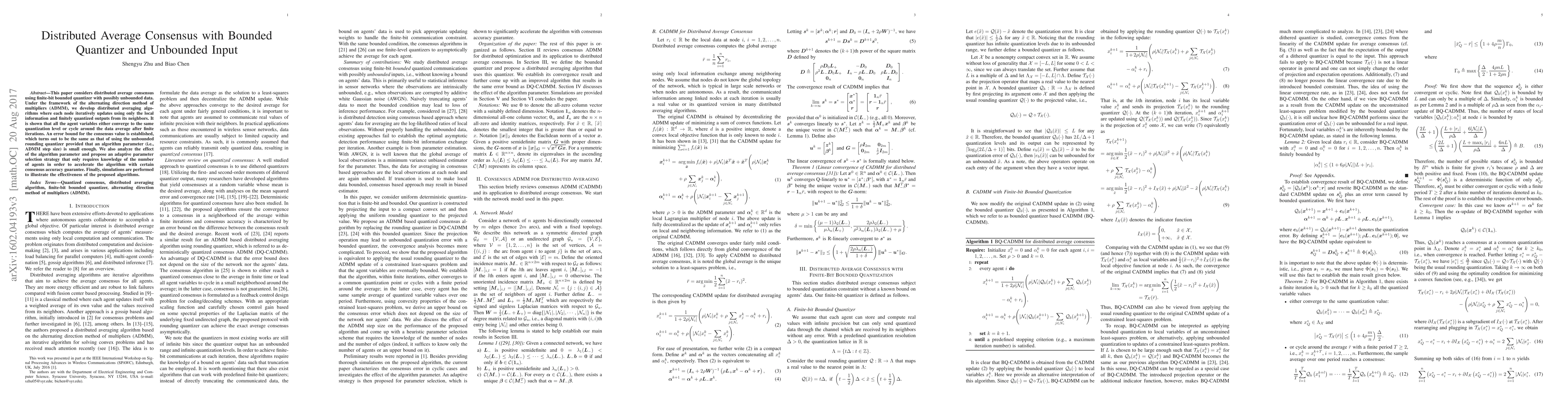 This paper develops distributed averaging algorithms for consensus using finite-bit quantizers and possibly unbounded data, showing convergence or cycling around the data average. An adaptive parameter selection strategy is proposed to accelerate the algorithm with accuracy guarantees, validated through simulations.