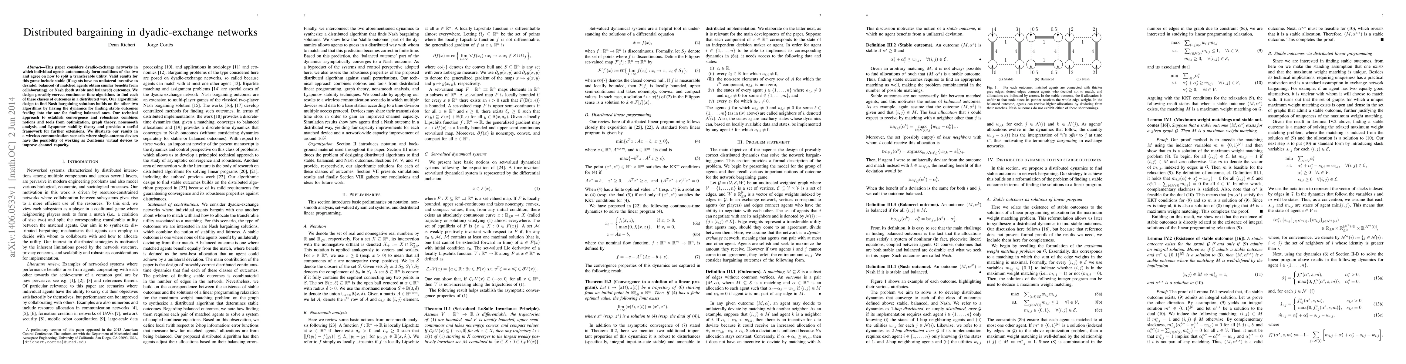 The paper introduces distributed algorithms for finding stable, balanced, and Nash outcomes in dyadic-exchange networks, leveraging techniques from set-valued dynamics, stability theory, and distributed linear programming.
