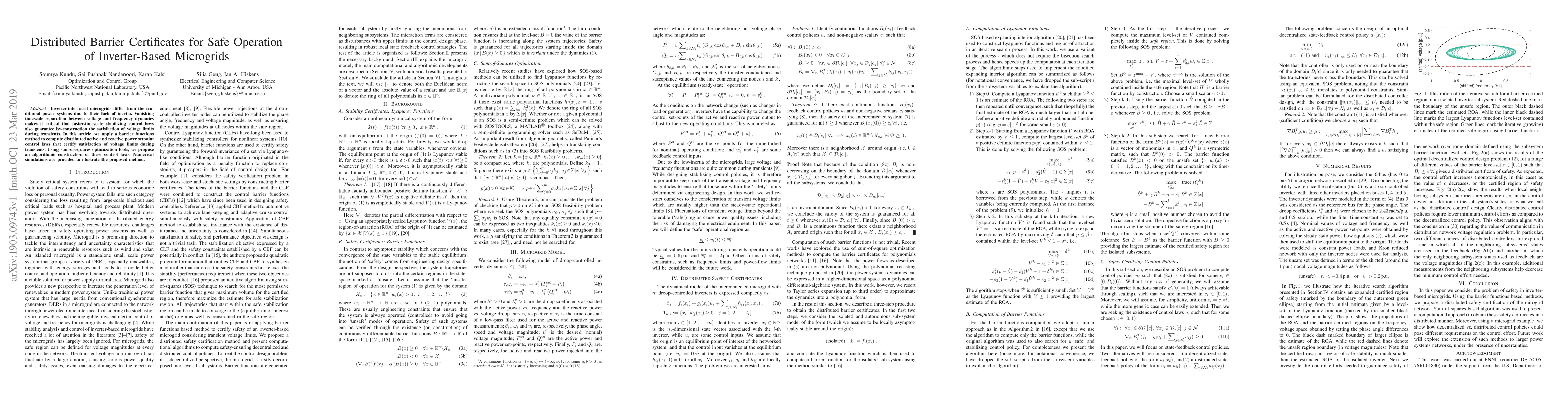 Researchers propose a method to ensure safe operation of inverter-based microgrids using distributed barrier certificates, which guarantee satisfaction of voltage limits during transients.