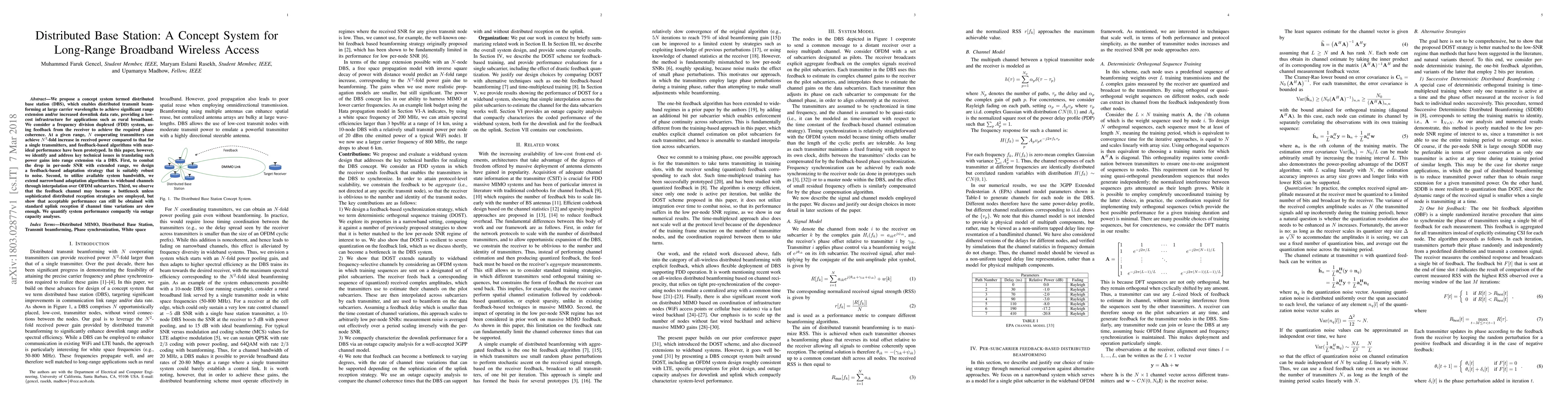 Researchers propose a distributed base station system to extend range and increase data rates in broadband wireless access, achieving significant power gains through cooperative transmission and feedback-based algorithms.