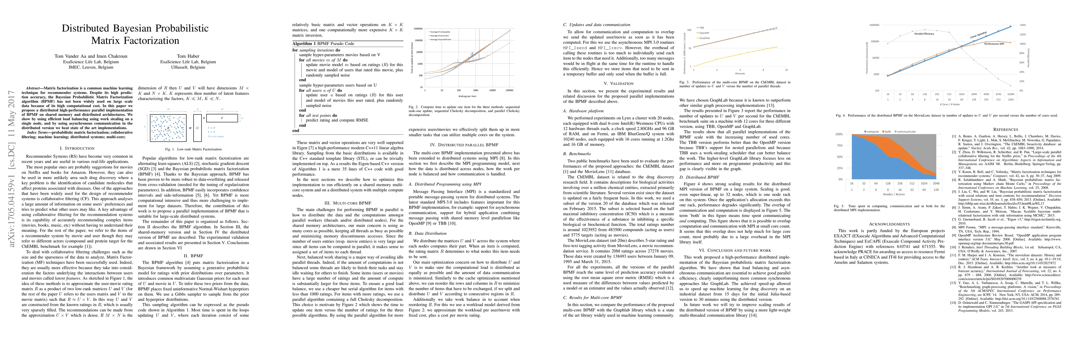 This paper presents a distributed, high-performance parallel implementation of Bayesian Probabilistic Matrix Factorization (BPMF) to handle large-scale data efficiently. The proposed method achieves better performance than state-of-the-art implementations using efficient load balancing and asynchronous communication.