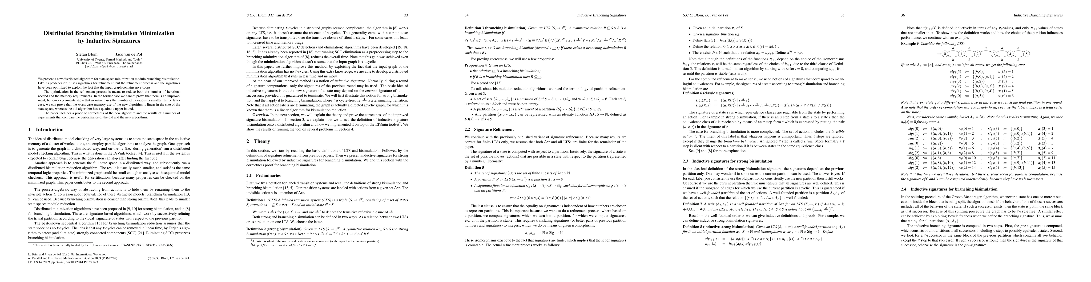 We present a new distributed algorithm for state space minimization modulo branching bisimulation. Like its predecessor it uses signatures for refinement, but the refinement process and the signatures have been optimized to exploit the fact that the input graph contains no tau-loops. The optimization in the refinement process is meant to reduce both the number of iterations needed and the memory requirements. In the former case we cannot prove that there is an improvement, but our experiments show that in many cases the number of iterations is smaller. In the latter case, we can prove that the worst case memory use of the new algorithm is linear in the size of the state space, whereas the old algorithm has a quadratic upper bound. The paper includes a proof of correctness of the new algorithm and the results of a number of experiments that compare the performance of the old and the new algorithms.
