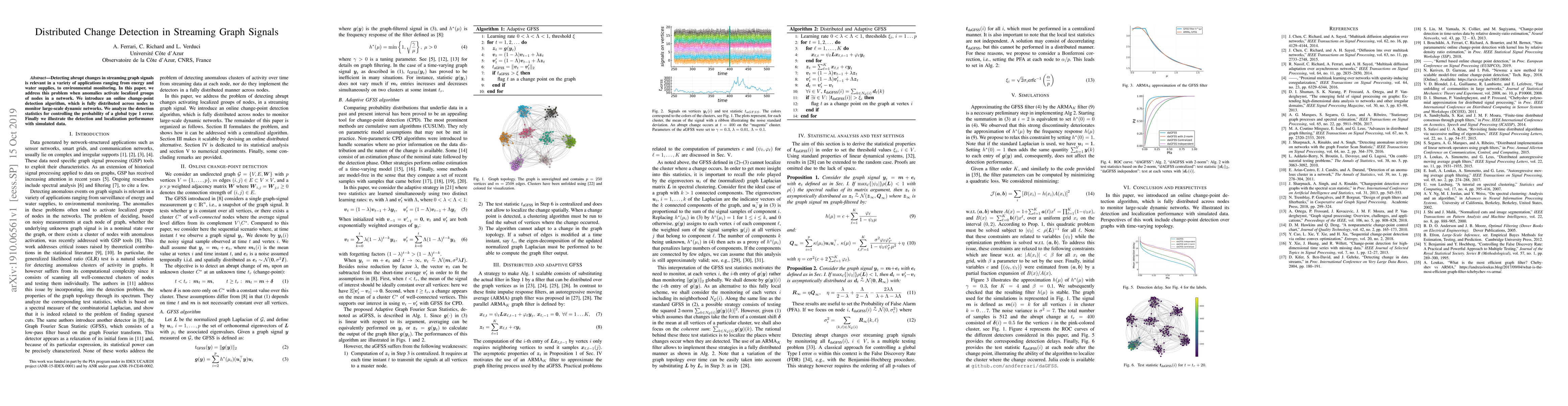 This paper proposes a fully distributed online change-point detection algorithm for monitoring abrupt changes in streaming graph signals, particularly when localized node groups experience anomalies. The algorithm controls the probability of global type 1 errors and is demonstrated through simulated data.