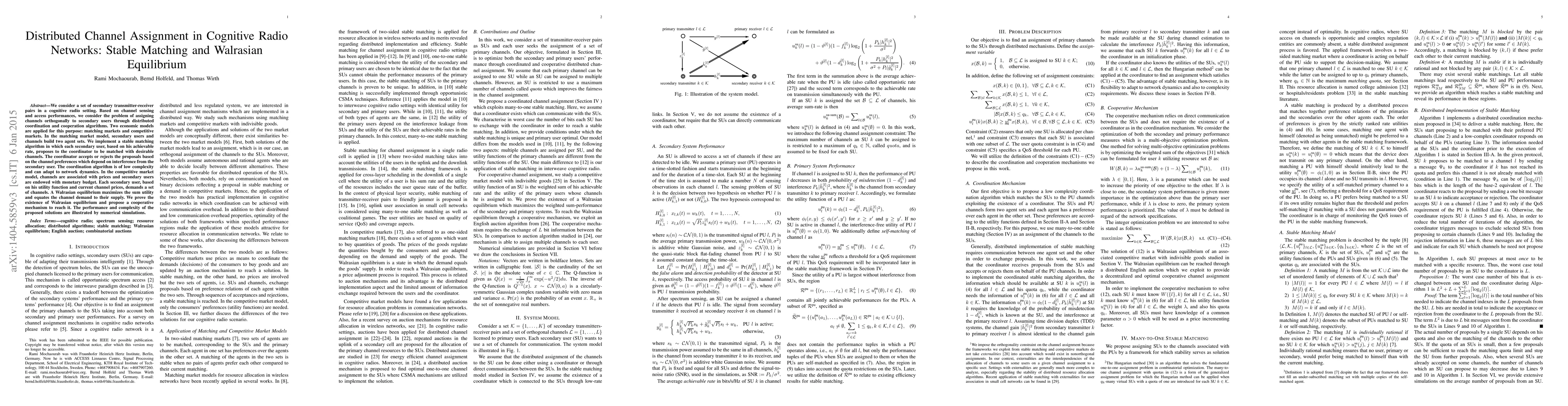 We consider a set of secondary transmitter-receiver pairs in a cognitive radio setting. Based on channel sensing and access performances, we consider the problem of assigning channels orthogonally to secondary users through distributed coordination and cooperation algorithms. Two economic models are applied for this purpose: matching markets and competitive markets. In the matching market model, secondary users and channels build two agent sets. We implement a stable matching algorithm in which each secondary user, based on his achievable rate, proposes to the coordinator to be matched with desirable channels. The coordinator accepts or rejects the proposals based on the channel preferences which depend on interference from the secondary user. The coordination algorithm is of low complexity and can adapt to network dynamics. In the competitive market model, channels are associated with prices and secondary users are endowed with monetary budget. Each secondary user, based on his utility function and current channel prices, demands a set of channels. A Walrasian equilibrium maximizes the sum utility and equates the channel demand to their supply. We prove the existence of Walrasian equilibrium and propose a cooperative mechanism to reach it. The performance and complexity of the proposed solutions are illustrated by numerical simulations.