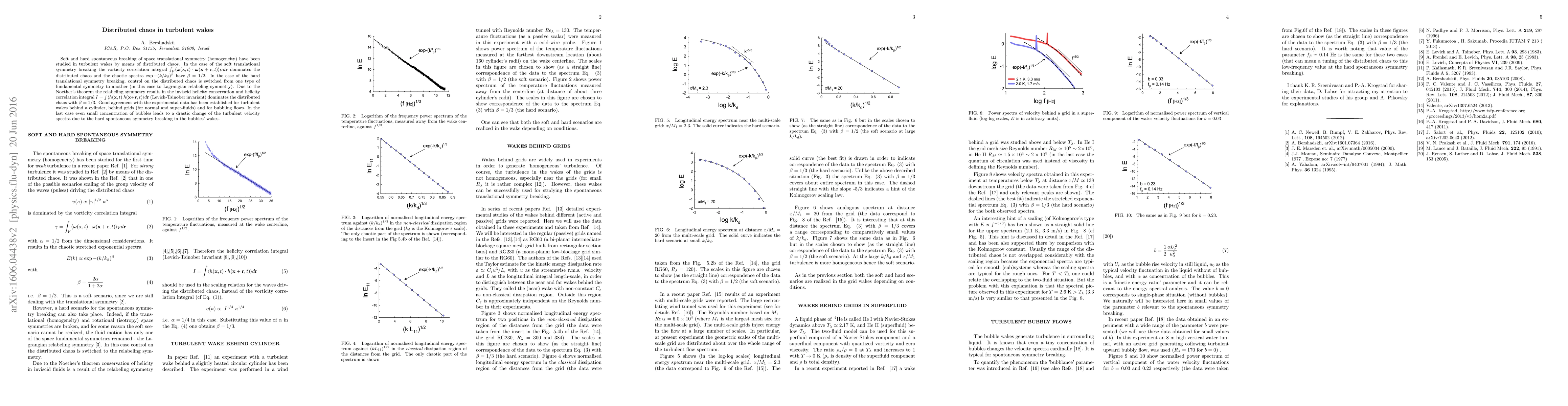 The paper introduces a comprehensive analysis of distributed chaos in turbulent wakes, distinguishing between soft and hard symmetry breaking scenarios and linking them to specific correlation integrals and their respective ν values.