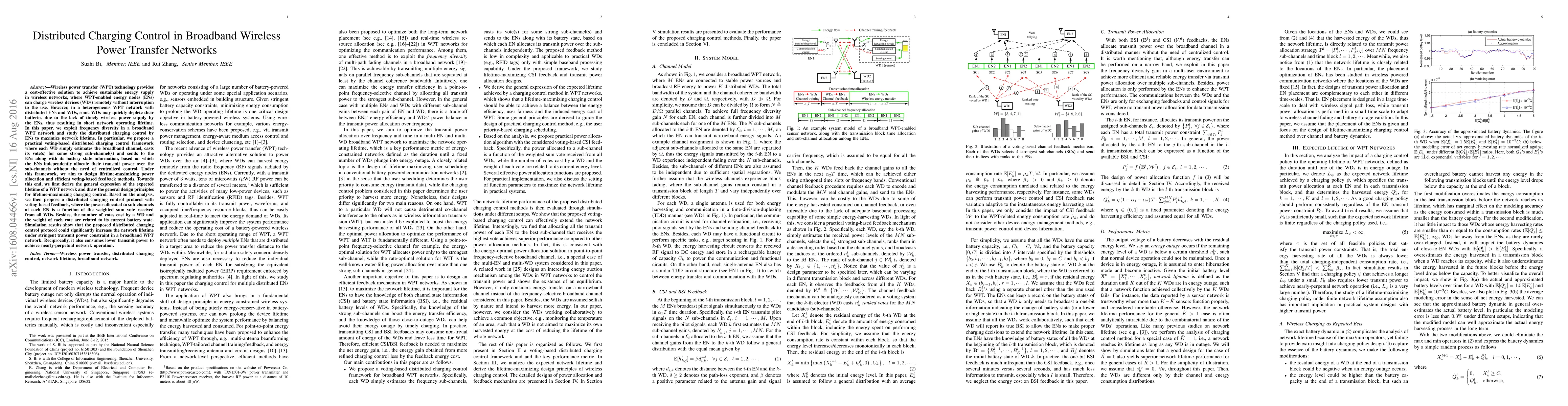 This paper proposes a distributed charging control framework for broadband wireless power transfer networks to maximize network lifetime. It introduces a voting-based method where wireless devices estimate channel conditions and vote for optimal sub-channels, enabling energy nodes to allocate power efficiently without centralized control, thereby significantly extending network operating lifetime.