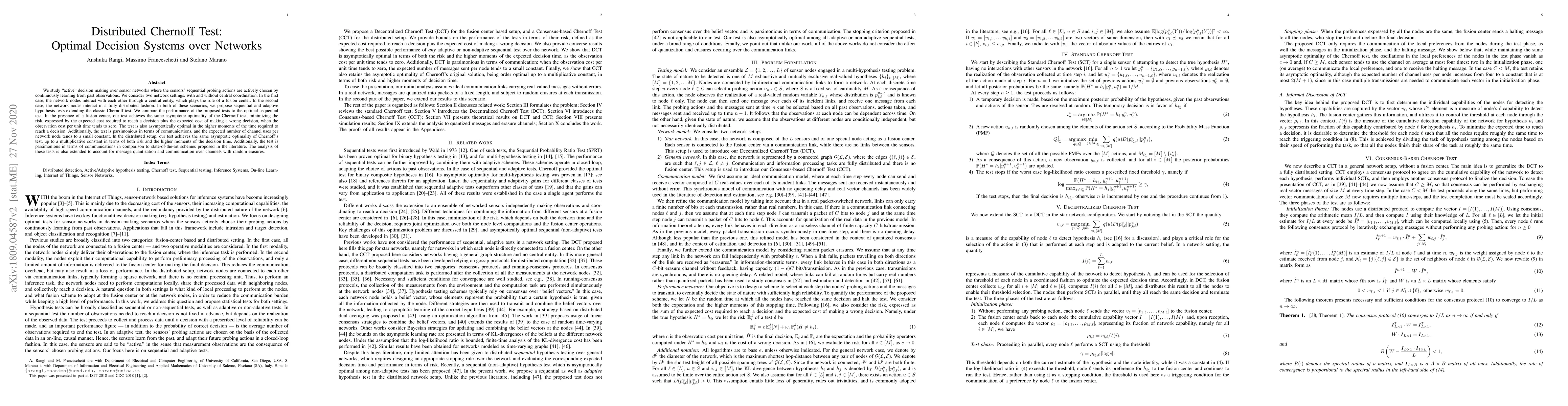 Researchers developed an optimal decision-making system over sensor networks with and without a central coordination hub, achieving asymptotic optimality in both cases and reducing communication costs.