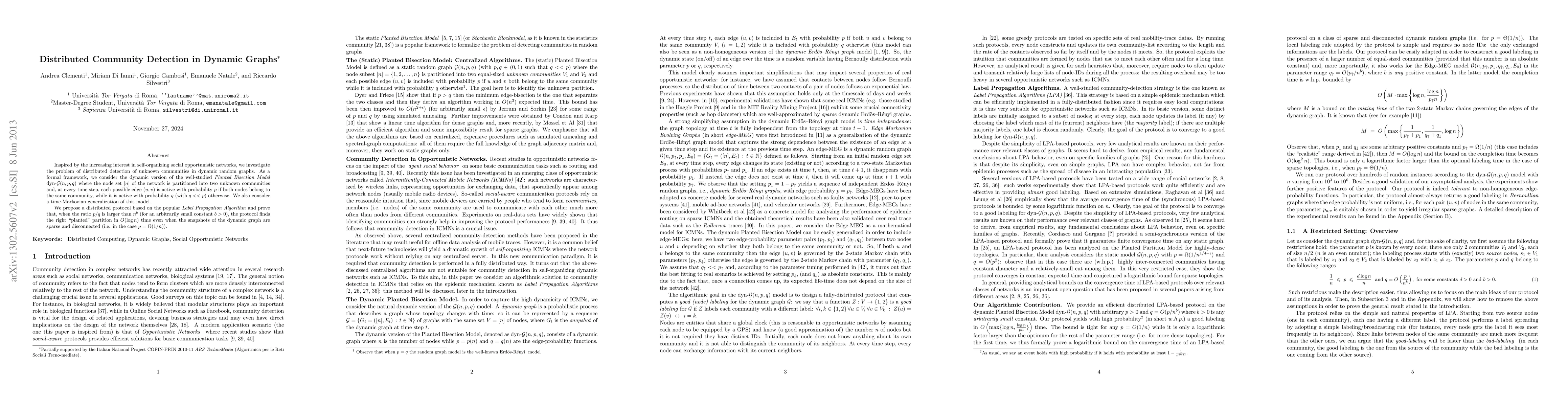 The paper introduces an efficient distributed protocol for community detection in dynamic graphs, grounded in the Label Propagation Algorithm, and provides a detailed analysis of its performance under various conditions.