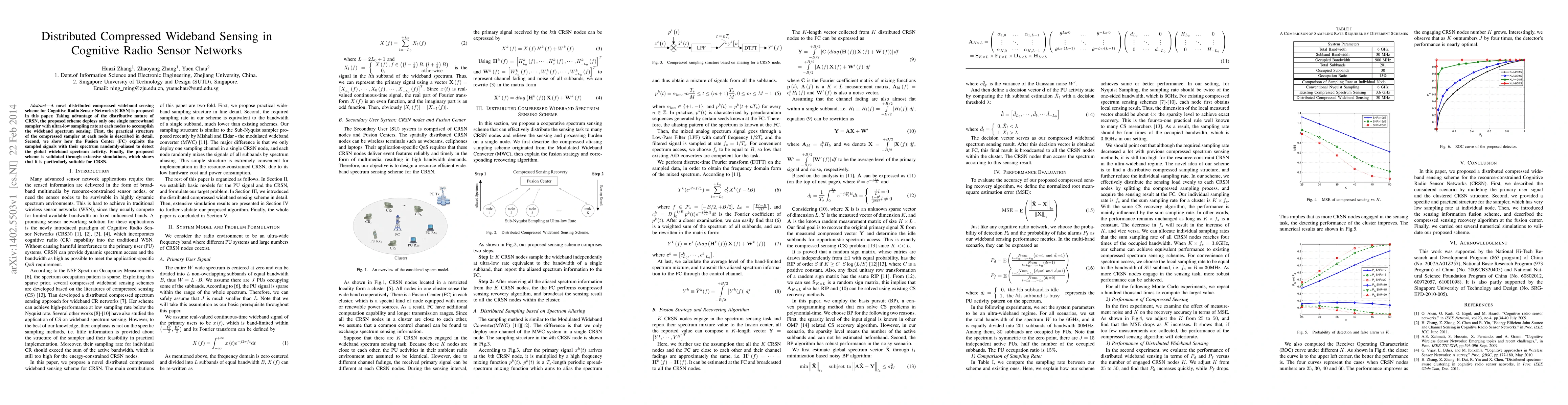 A novel distributed compressed wideband sensing scheme for Cognitive Radio Sensor Networks (CRSN) is proposed in this paper. Taking advantage of the distributive nature of CRSN, the proposed scheme deploys only one single narrowband sampler with ultra-low sampling rate at each nodes to accomplish the wideband spectrum sensing. First, the practical structure of the compressed sampler at each node is described in detail. Second, we show how the Fusion Center (FC) exploits the sampled signals with their spectrum randomly-aliased to detect the global wideband spectrum activity. Finally, the proposed scheme is validated through extensive simulations, which shows that it is particularly suitable for CRSN.