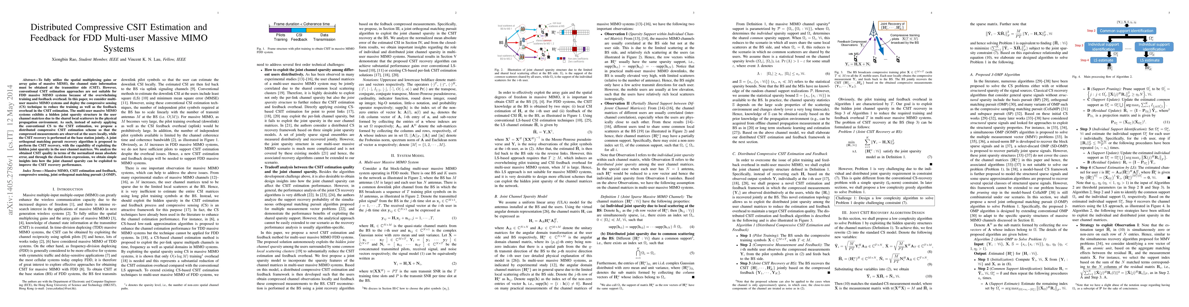 This paper proposes a distributed compressive sensing technique to estimate channel state information at the transmitter (CSIT) in FDD multi-user massive MIMO systems, aiming to reduce training and feedback overhead. It leverages joint sparsity in user channel matrices and employs a joint orthogonal matching pursuit algorithm for CSIT recovery at the base station.