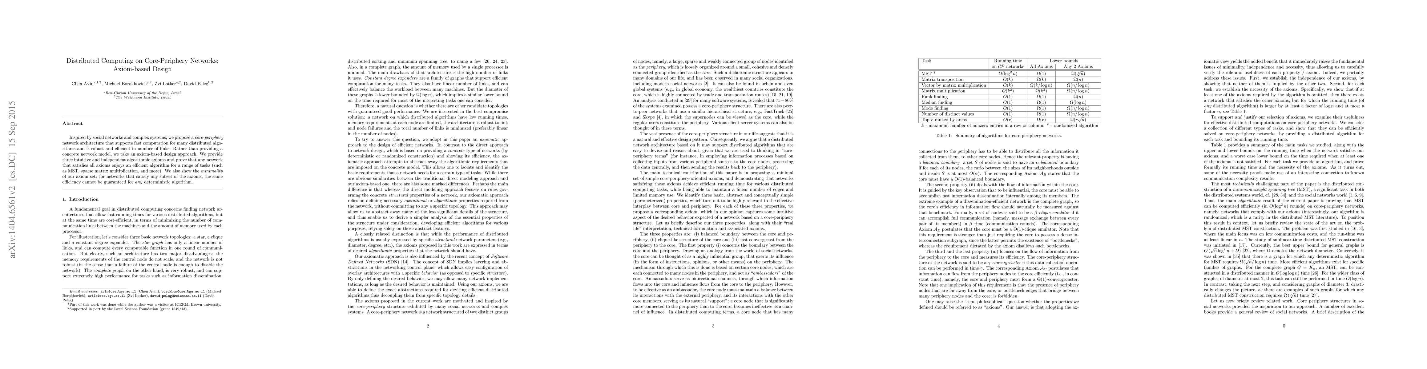 Inspired by social networks and complex systems, we propose a core-periphery network architecture that supports fast computation for many distributed algorithms and is robust and efficient in number of links. Rather than providing a concrete network model, we take an axiom-based design approach. We provide three intuitive (and independent) algorithmic axioms and prove that any network that satisfies all axioms enjoys an efficient algorithm for a range of tasks (e.g., MST, sparse matrix multiplication, etc.). We also show the minimality of our axiom set: for networks that satisfy any subset of the axioms, the same efficiency cannot be guaranteed for any deterministic algorithm.