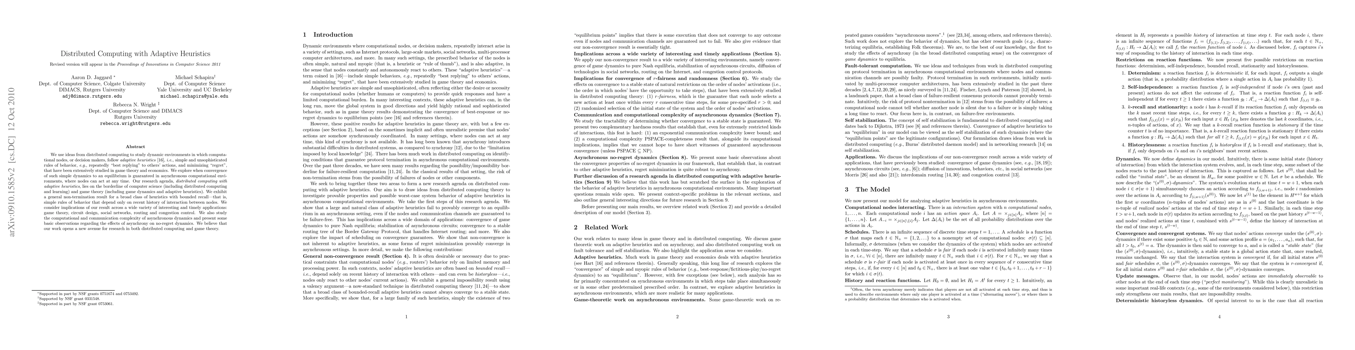 This paper explores the convergence of adaptive heuristics in distributed computing environments, focusing on asynchronous dynamics where nodes act at any time. It reveals a general non-termination result for heuristics with bounded recall, highlighting implications for game theory, circuit design, and social networks.