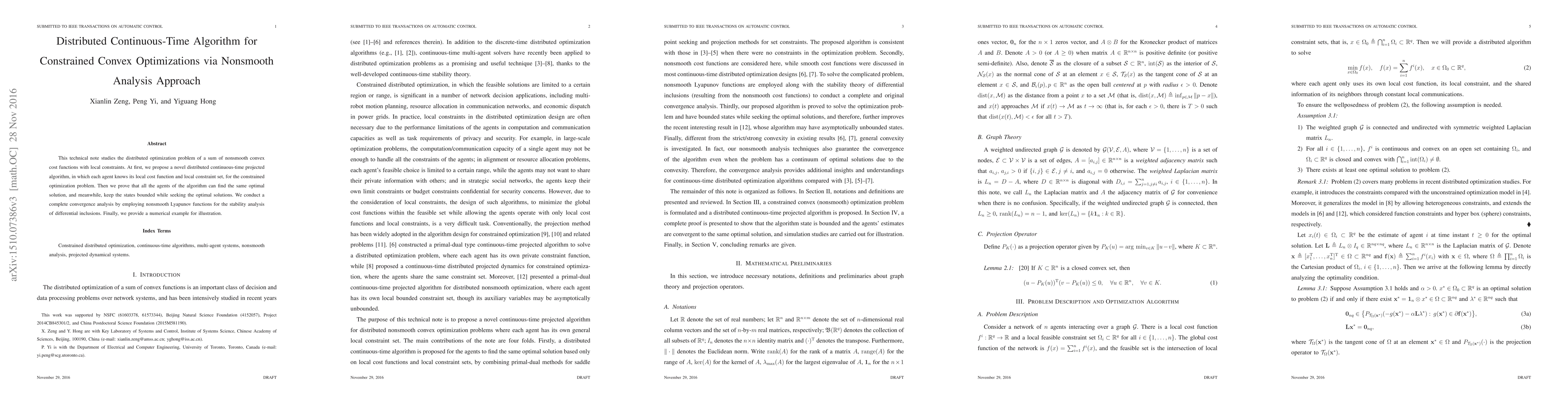 This technical note studies the distributed optimization problem of a sum of nonsmooth convex cost functions with local constraints. At first, we propose a novel distributed continuous-time projected algorithm, in which each agent knows its local cost function and local constraint set, for the constrained optimization problem. Then we prove that all the agents of the algorithm can find the same optimal solution, and meanwhile, keep the states bounded while seeking the optimal solutions. We conduct a complete convergence analysis by employing nonsmooth Lyapunov functions for the stability analysis of differential inclusions. Finally, we provide a numerical example for illustration.