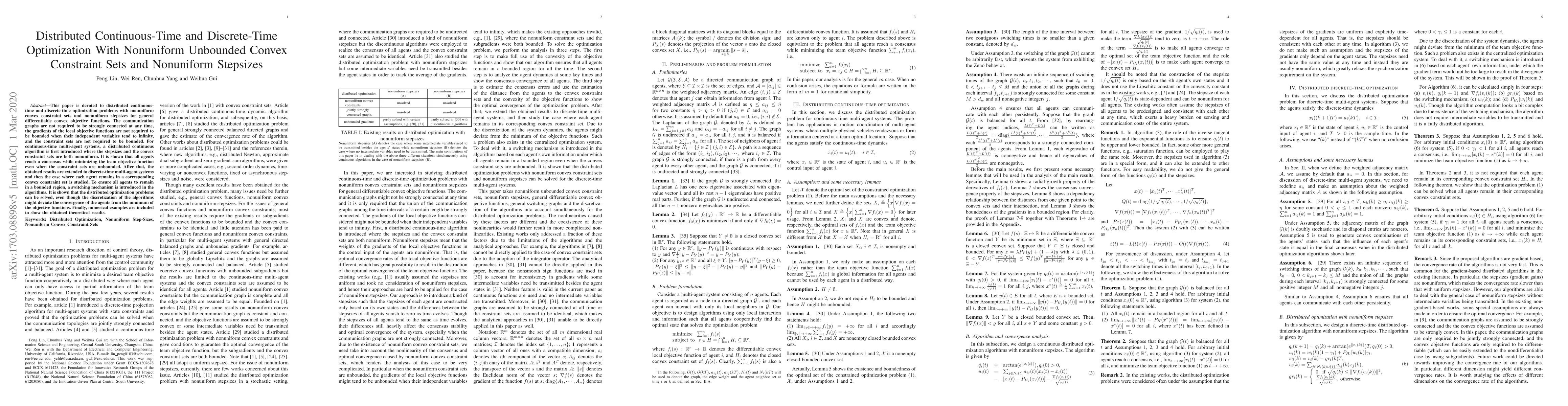This paper is devoted to distributed continuous-time and discrete-time optimization problems with nonuniform convex constraint sets and nonuniform stepsizes for general differentiable convex objective functions. The communication graphs are not required to be strongly connected at any time, the gradients of the local objective functions are not required to be bounded when their independent variables tend to infinity, and the constraint sets are not required to be bounded. For continuous-time multi-agent systems, a distributed continuous algorithm is first introduced where the stepsizes and the convex constraint sets are both nonuniform. It is shown that all agents reach a consensus while minimizing the team objective function even when the constraint sets are unbounded. After that, the obtained results are extended to discrete-time multi-agent systems and then the case where each agent remains in a corresponding convex constraint set is studied. To ensure all agents to remain in a bounded region, a switching mechanism is introduced in the algorithms. It is shown that the distributed optimization problems can be solved, even though the discretization of the algorithms might deviate the convergence of the agents from the minimum of the objective functions. Finally, numerical examples are included to show the obtained theoretical results.
