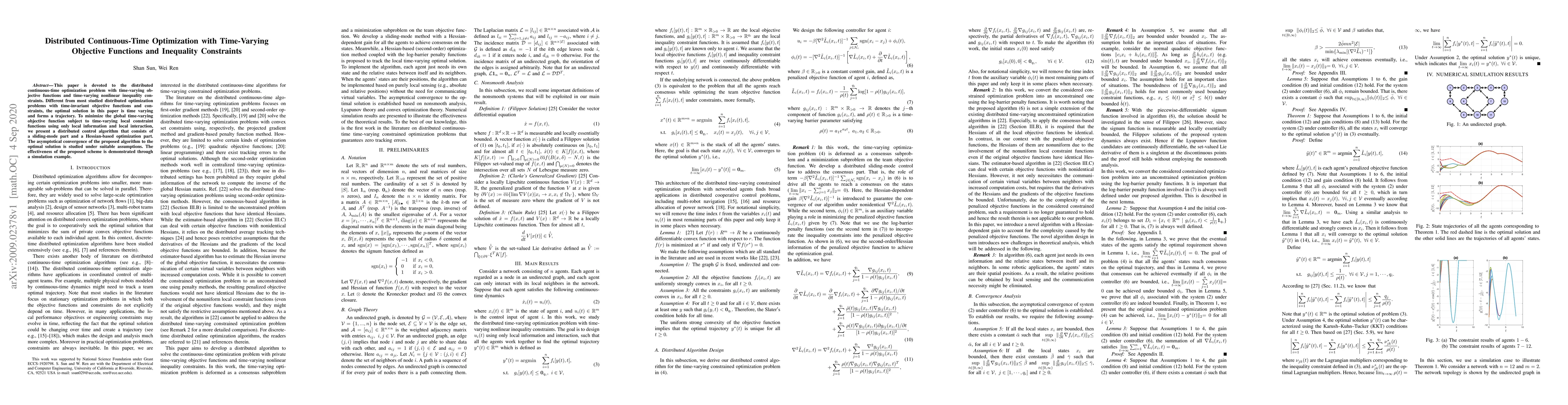 This paper is devoted to the distributed continuous-time optimization problem with time-varying objective functions and time-varying nonlinear inequality constraints. Different from most studied distributed optimization problems with time-invariant objective functions and constraints, the optimal solution in this paper is time varying and forms a trajectory. To minimize the global time-varying objective function subject to time-varying local constraint functions using only local information and local interaction, we present a distributed control algorithm that consists of a sliding-mode part and a Hessian-based optimization part. The asymptotical convergence of the proposed algorithm to the optimal solution is studied under suitable assumptions. The effectiveness of the proposed scheme is demonstrated through a simulation example.