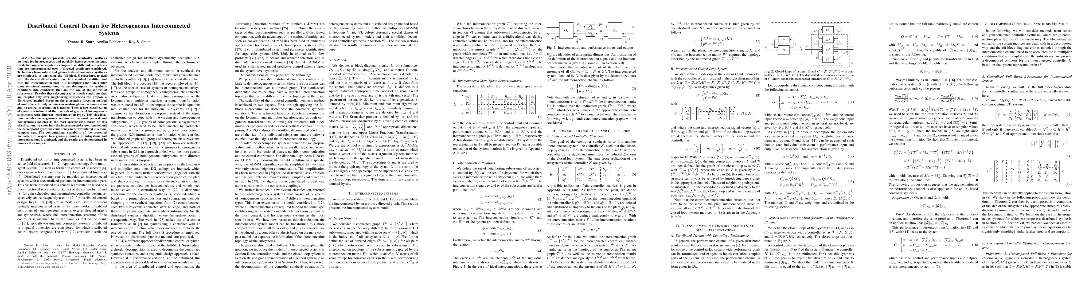 This paper develops scalable controller synthesis methods for heterogeneous interconnected systems using distributed techniques, employing the alternating direction method of multipliers to handle decentralized subsystems and interconnections without central coordination. The proposed methods are computationally scalable and demonstrated through numerical examples.