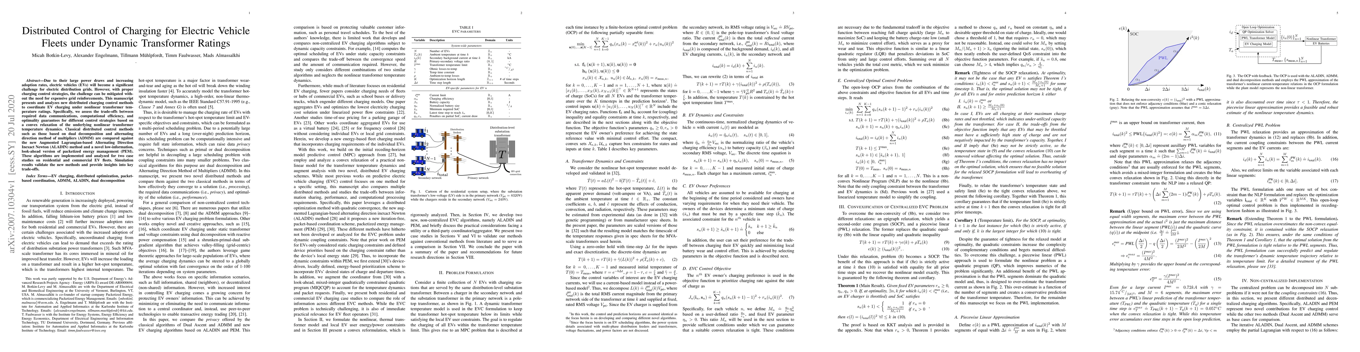 This paper proposes new distributed charging control methods for electric vehicle fleets to manage dynamic transformer ratings without grid reinforcements. It compares classical distributed control methods with a new ALADIN method and a low-information PEM approach, analyzing trade-offs in communication, computational efficiency, and optimality. Simulation results validate the effectiveness of the new methods in residential and commercial EV fleet scenarios.