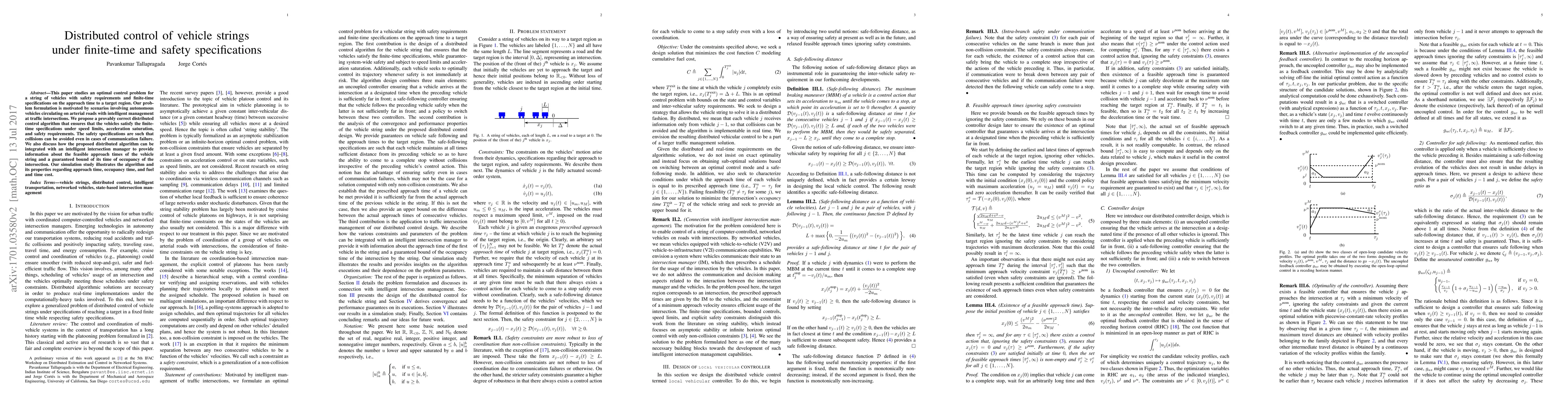 Researchers developed a provably correct distributed control algorithm to manage a string of autonomous vehicles on arterial roads with safety requirements and finite-time specifications. The algorithm ensures safe collisions can be avoided even in cases of communication failure, improving traffic flow and intersection management.