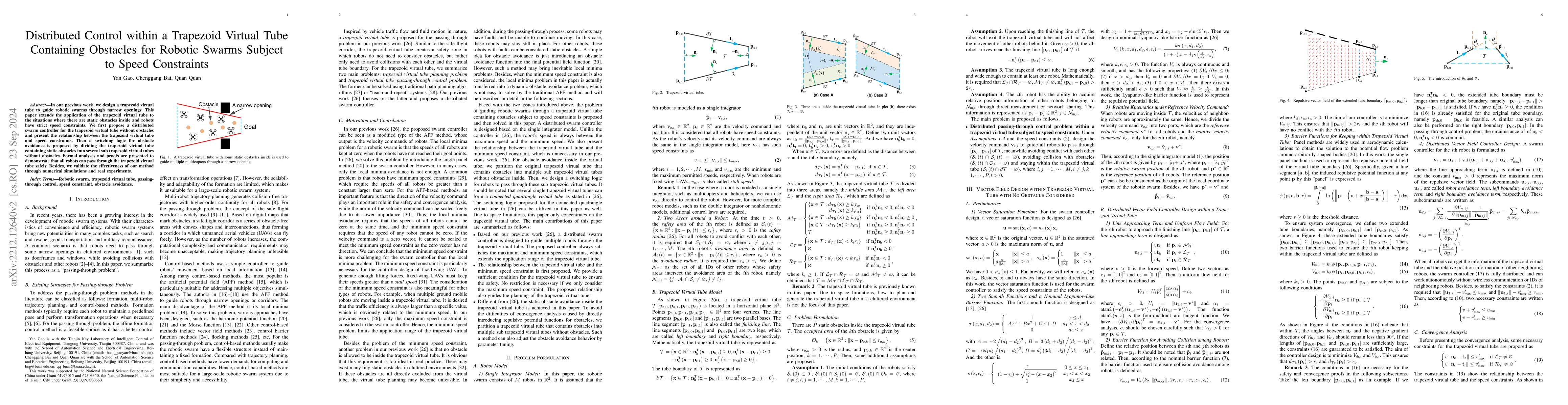 For guiding the UAV swarm to pass through narrow openings, a trapezoid virtual tube is designed in our previous work. In this paper, we generalize its application range to the condition that there exist obstacles inside the trapezoid virtual tube and UAVs have strict speed constraints. First, a distributed vector field controller is proposed for the trapezoid virtual tube with no obstacle inside. The relationship between the trapezoid virtual tube and the speed constraints is also presented. Then, a switching logic for the obstacle avoidance is put forward. The key point is to divide the trapezoid virtual tube containing obstacles into several sub trapezoid virtual tubes with no obstacle inside. Formal analyses and proofs are made to show that all UAVs are able to pass through the trapezoid virtual tube safely. Besides, the effectiveness of the proposed method is validated by numerical simulations and real experiments.