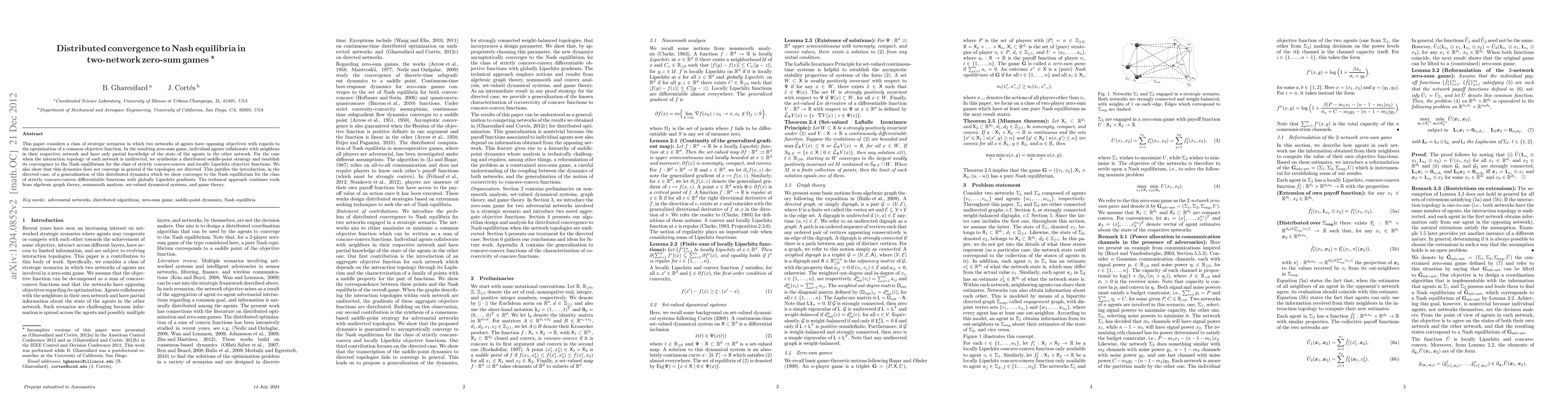 Researchers develop a distributed strategy for two networks of agents with opposing objectives to reach a Nash equilibrium in zero-sum games. Their approach converges in undirected networks but requires generalization for directed topologies.