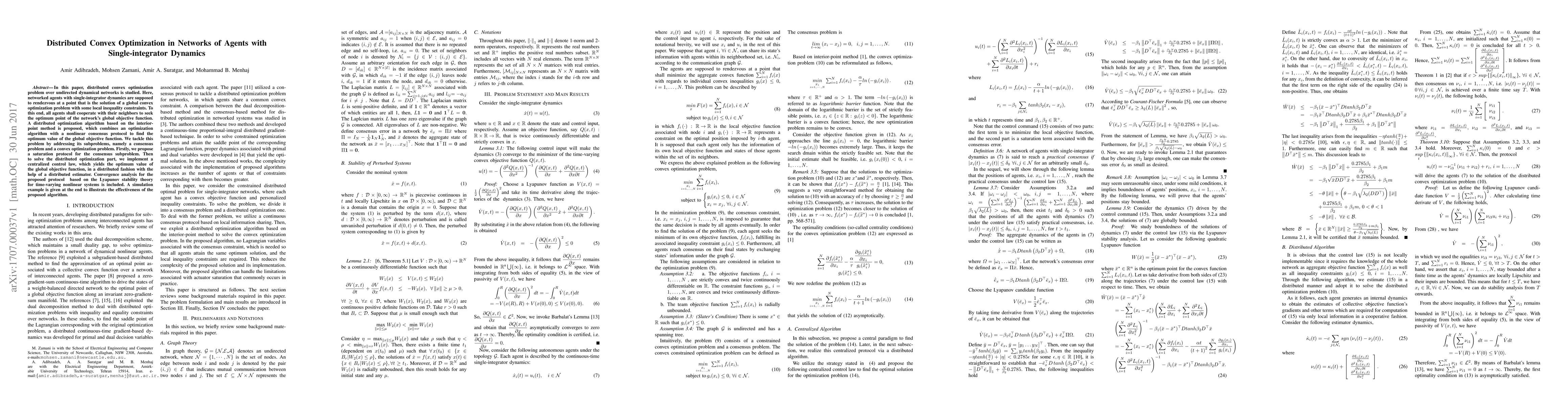 This paper proposes a distributed convex optimization algorithm for networked agents with single-integrator dynamics to collaboratively find a solution to a global optimization problem while satisfying local constraints. The algorithm combines an interior-point method with a consensus protocol and a distributed estimator for convergence, validated through simulation.