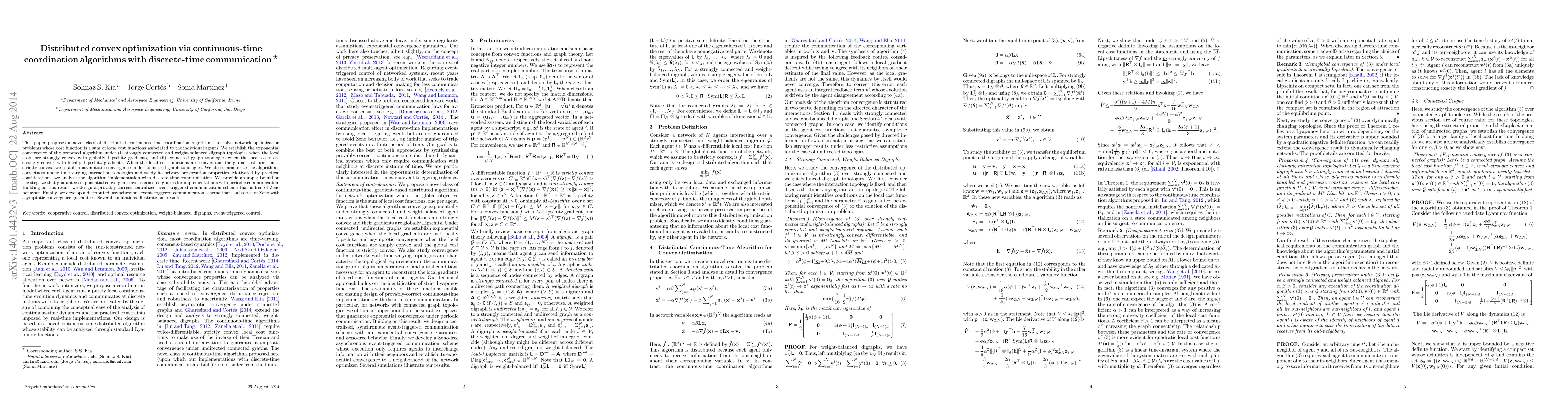 This paper proposes a novel class of distributed continuous-time coordination algorithms to solve network optimization problems whose cost function is a sum of local cost functions associated to the individual agents. We establish the exponential convergence of the proposed algorithm under (i) strongly connected and weight-balanced digraph topologies when the local costs are strongly convex with globally Lipschitz gradients, and (ii) connected graph topologies when the local costs are strongly convex with locally Lipschitz gradients. When the local cost functions are convex and the global cost function is strictly convex, we establish asymptotic convergence under connected graph topologies. We also characterize the algorithm's correctness under time-varying interaction topologies and study its privacy preservation properties. Motivated by practical considerations, we analyze the algorithm implementation with discrete-time communication. We provide an upper bound on the stepsize that guarantees exponential convergence over connected graphs for implementations with periodic communication. Building on this result, we design a provably-correct centralized event-triggered communication scheme that is free of Zeno behavior. Finally, we develop a distributed, asynchronous event-triggered communication scheme that is also free of Zeno with asymptotic convergence guarantees. Several simulations illustrate our results.