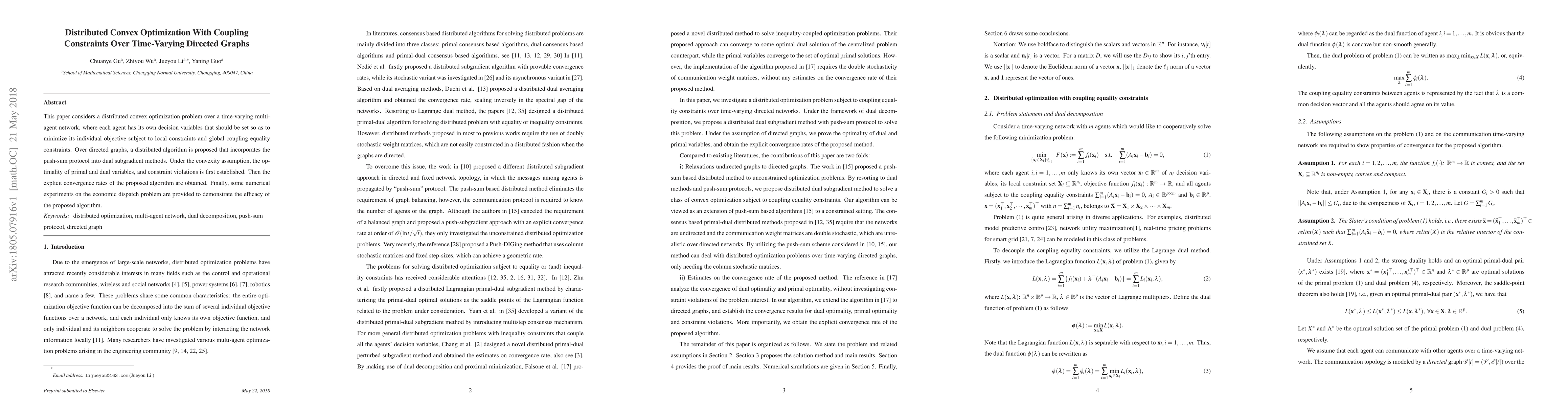 This paper proposes a distributed convex optimization algorithm for time-varying multi-agent networks over directed graphs, integrating the push-sum protocol with dual subgradient methods. The algorithm achieves optimality and provides explicit convergence rates, validated through economic dispatch problem simulations.