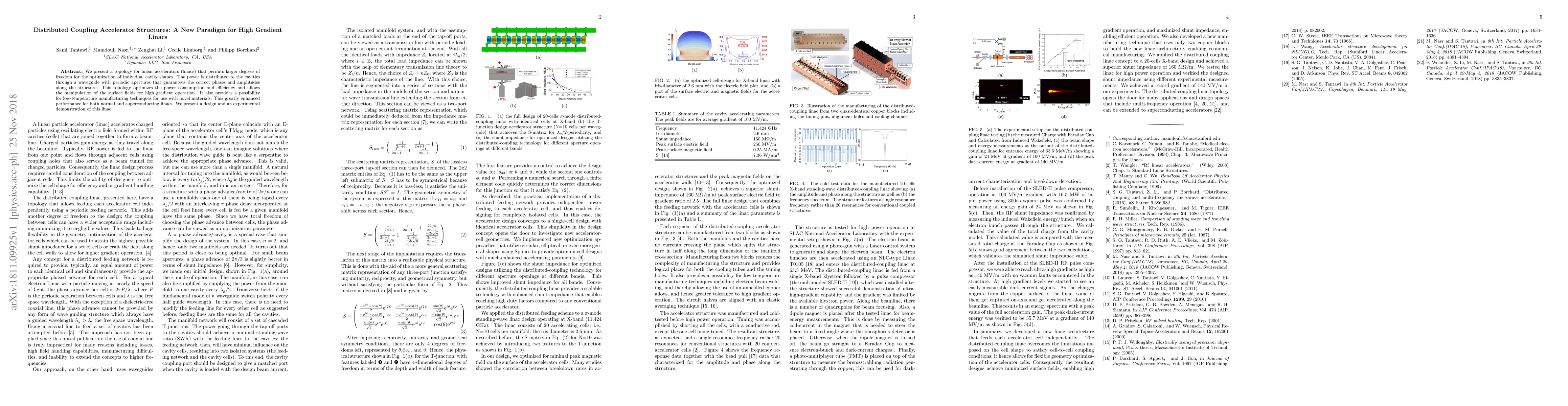 We present a topology for linear accelerators (linacs) that permits larger degrees of freedom for the optimization of individual cavity shapes. The power is distributed to the cavities through a waveguide with periodic apertures that guarantees the correct phases and amplitudes along the structure. This topology optimizes the power consumption and efficiency and allows the manipulation of the surface fields for high gradient operation. It also provides a possibility for low-temperature manufacturing techniques for use with novel materials. This greatly enhanced performance for both normal and superconducting linacs. We present a design and an experimental demonstration of this linac.