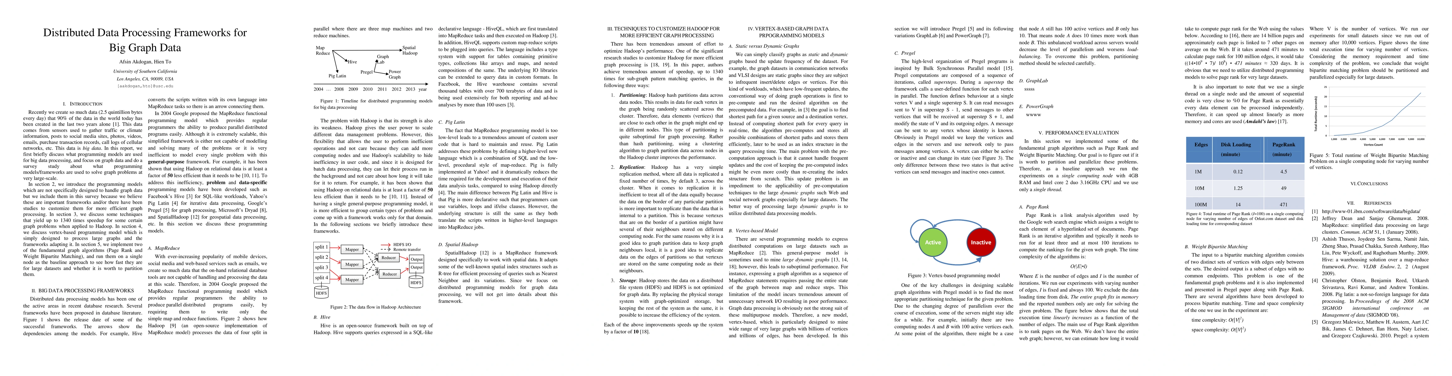 This paper surveys distributed frameworks for processing large-scale graph data, discussing various programming models and techniques that enhance graph processing efficiency. It evaluates the performance of fundamental graph algorithms on single-node and distributed setups to assess the benefits of partitioning large datasets.