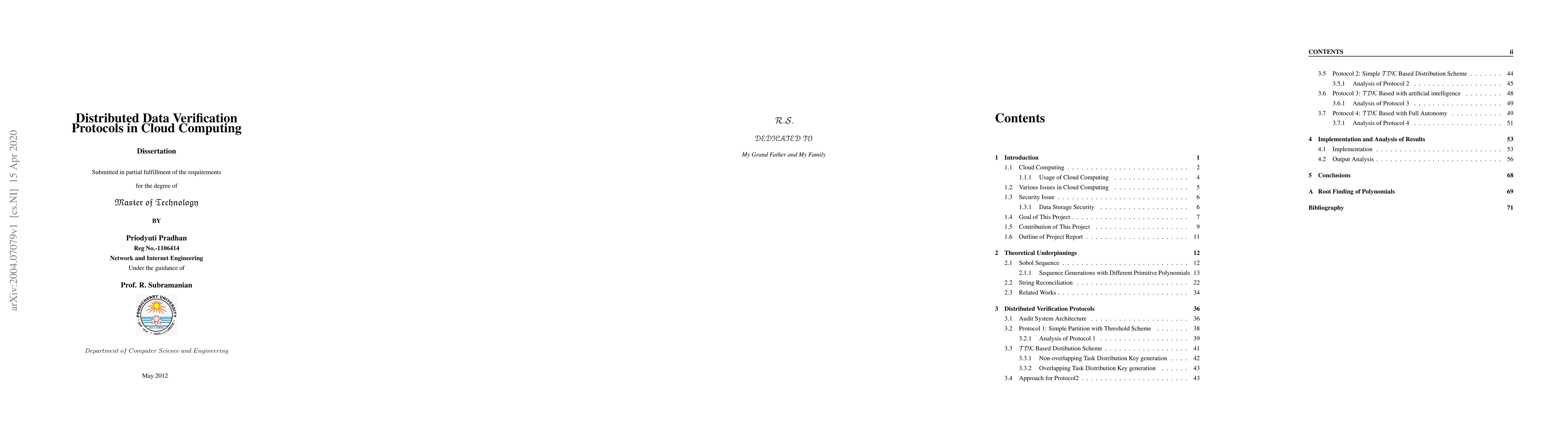 This paper proposes a distributed algorithmic approach to verify the integrity of data stored in cloud computing, using probabilistic verifiable schemes and Sobol random sequences to efficiently verify data.