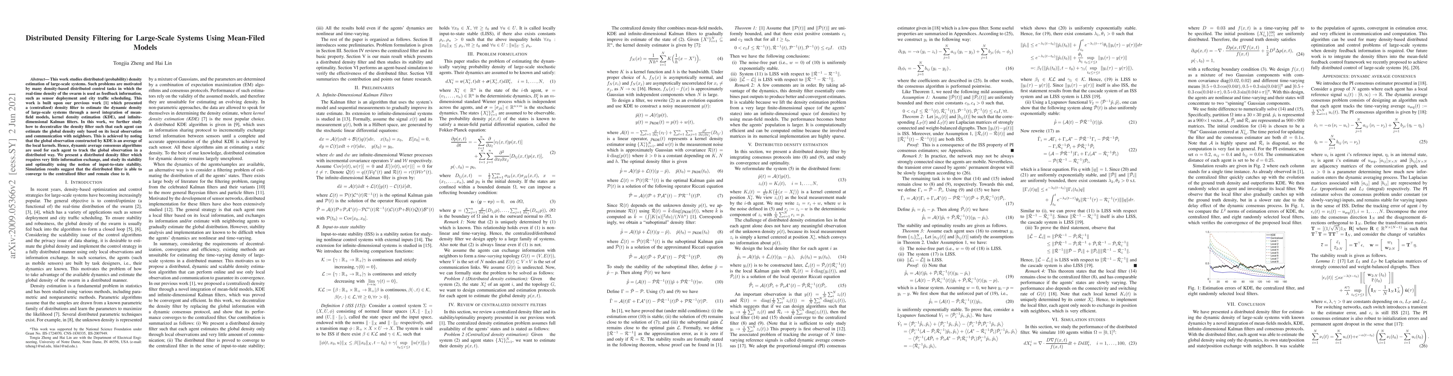 This paper proposes a distributed density filter for large-scale systems, enabling each agent to estimate global density based on local observations and neighbor communication. The method leverages dynamic average consensus algorithms and requires minimal information exchange, demonstrating stability and optimality through simulation.
