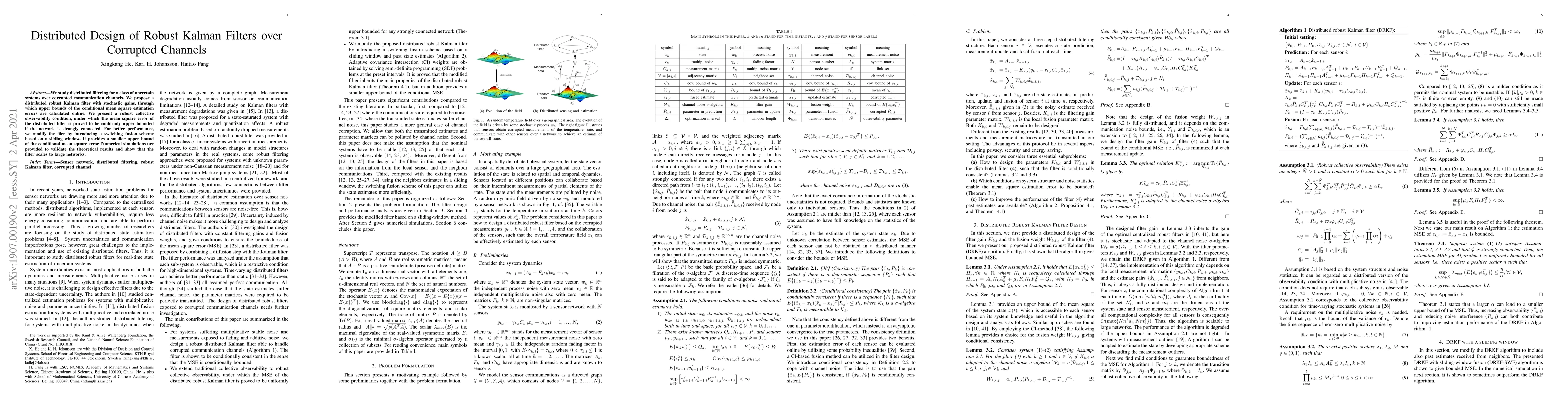 A distributed Kalman filter is proposed to estimate uncertain systems over corrupted channels with improved robustness and performance through a switching fusion scheme. The filter's mean square error is proven to be uniformly upper bounded under strong network connectivity.