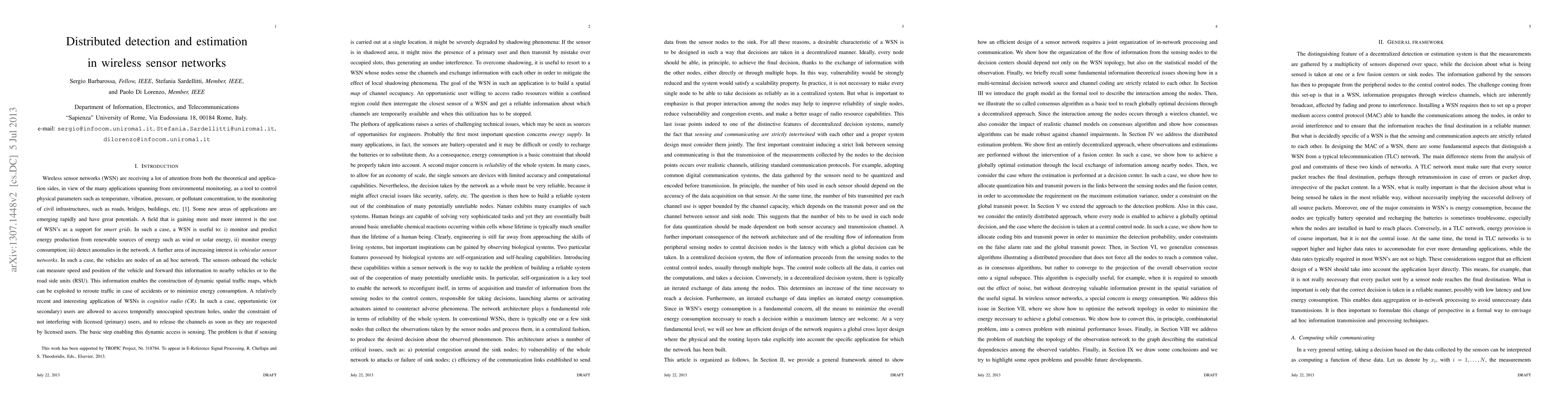 This paper presents a comprehensive framework for distributed detection and estimation in wireless sensor networks, emphasizing the joint optimization of in-network processing and communication. It explores decentralized and centralized approaches for estimation and detection, addressing optimization of resource allocation and energy consumption to achieve global consensus while minimizing energy usage.