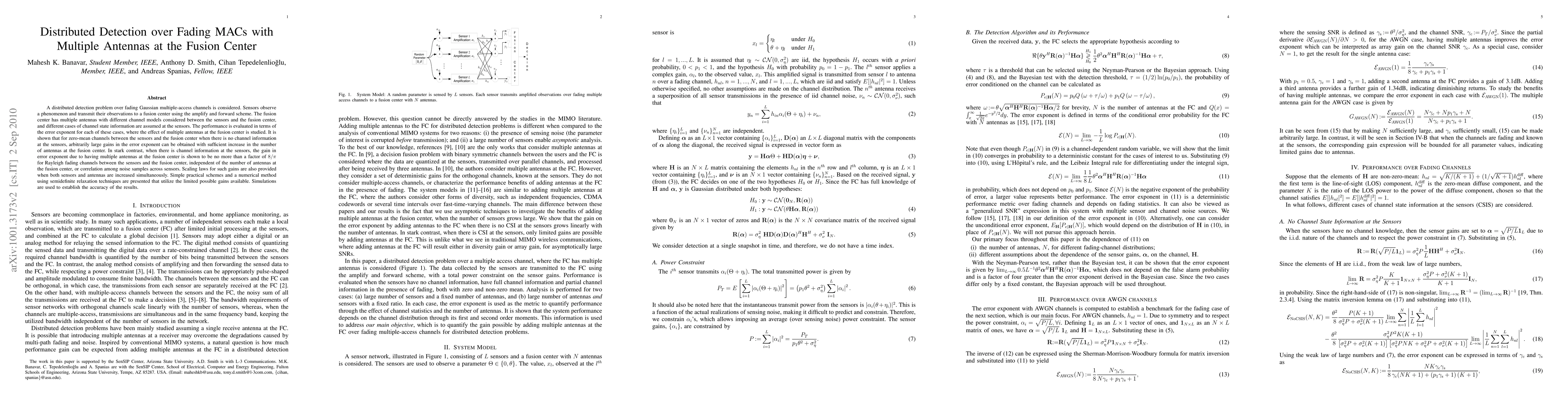 This paper investigates distributed detection over fading multiple-access channels with multiple antennas at the fusion center, analyzing the error exponent under various channel state information scenarios. It demonstrates that while multiple antennas can significantly improve detection performance when no channel information is available at sensors, the gains are limited when channel information is present, regardless of the number of fusion center antennas.