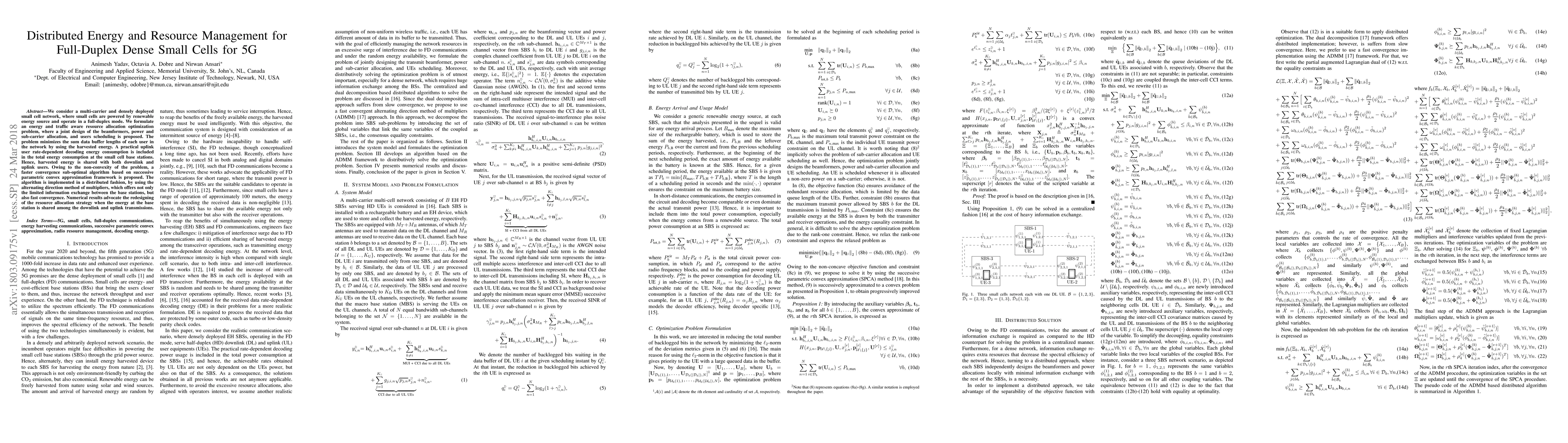 We consider a multi-carrier and densely deployed small cell network, where small cells are powered by renewable energy source and operate in a full-duplex mode. We formulate an energy and traffic aware resource allocation optimization problem, where a joint design of the beamformers, power and sub-carrier allocation, and users scheduling is proposed. The problem minimizes the sum data buffer lengths of each user in the network by using the harvested energy. A practical uplink user rate-dependent decoding energy consumption is included in the total energy consumption at the small cell base stations. Hence, harvested energy is shared with both downlink and uplink users. Owing to the non-convexity of the problem, a faster convergence sub-optimal algorithm based on successive parametric convex approximation framework is proposed. The algorithm is implemented in a distributed fashion, by using the alternating direction method of multipliers, which offers not only the limited information exchange between the base stations, but also fast convergence. Numerical results advocate the redesigning of the resource allocation strategy when the energy at the base station is shared among the downlink and uplink transmissions.