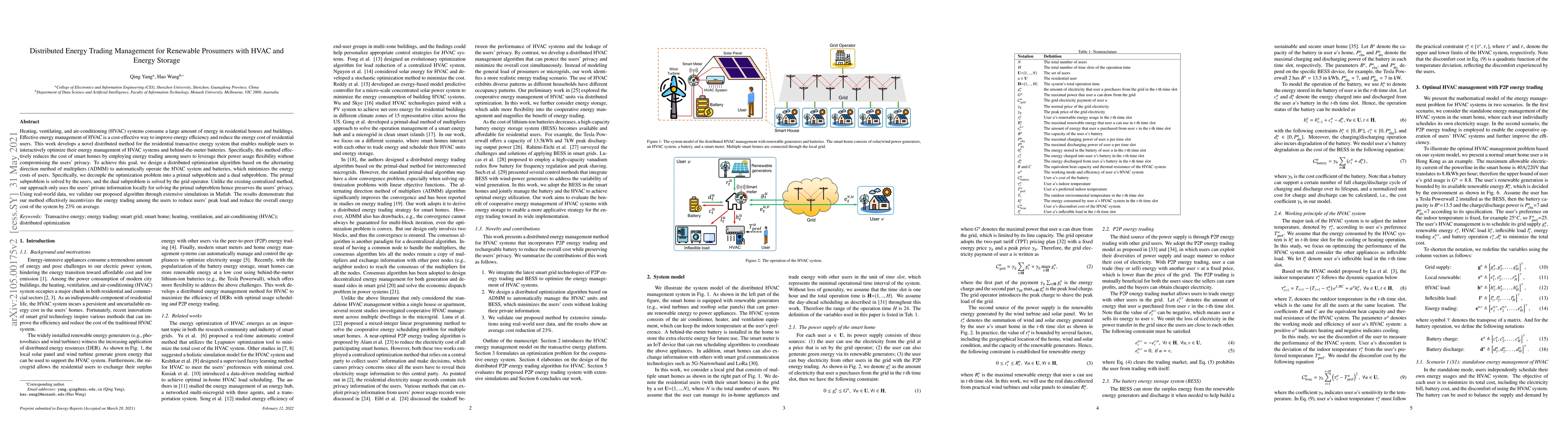 This paper proposes a distributed optimization method for managing energy trading among residential users with HVAC systems and energy storage, leveraging ADMM to minimize costs while preserving user privacy. Simulations show a 23% reduction in overall energy costs through incentivized energy trading.
