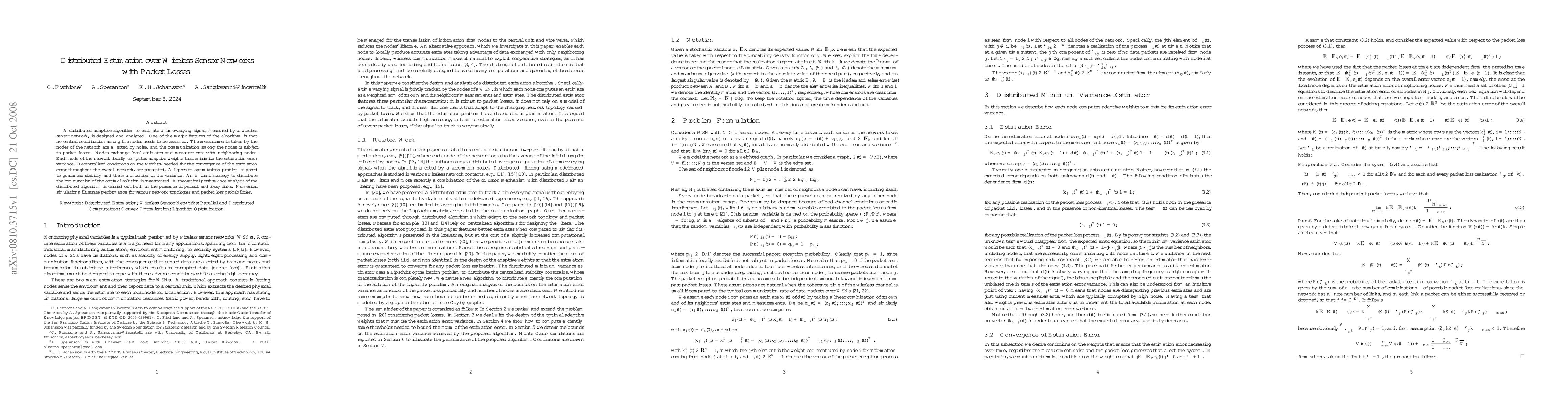 A distributed adaptive algorithm to estimate a time-varying signal, measured by a wireless sensor network, is designed and analyzed. One of the major features of the algorithm is that no central coordination among the nodes needs to be assumed. The measurements taken by the nodes of the network are affected by noise, and the communication among the nodes is subject to packet losses. Nodes exchange local estimates and measurements with neighboring nodes. Each node of the network locally computes adaptive weights that minimize the estimation error variance. Decentralized conditions on the weights, needed for the convergence of the estimation error throughout the overall network, are presented. A Lipschitz optimization problem is posed to guarantee stability and the minimization of the variance. An efficient strategy to distribute the computation of the optimal solution is investigated. A theoretical performance analysis of the distributed algorithm is carried out both in the presence of perfect and lossy links. Numerical simulations illustrate performance for various network topologies and packet loss probabilities.