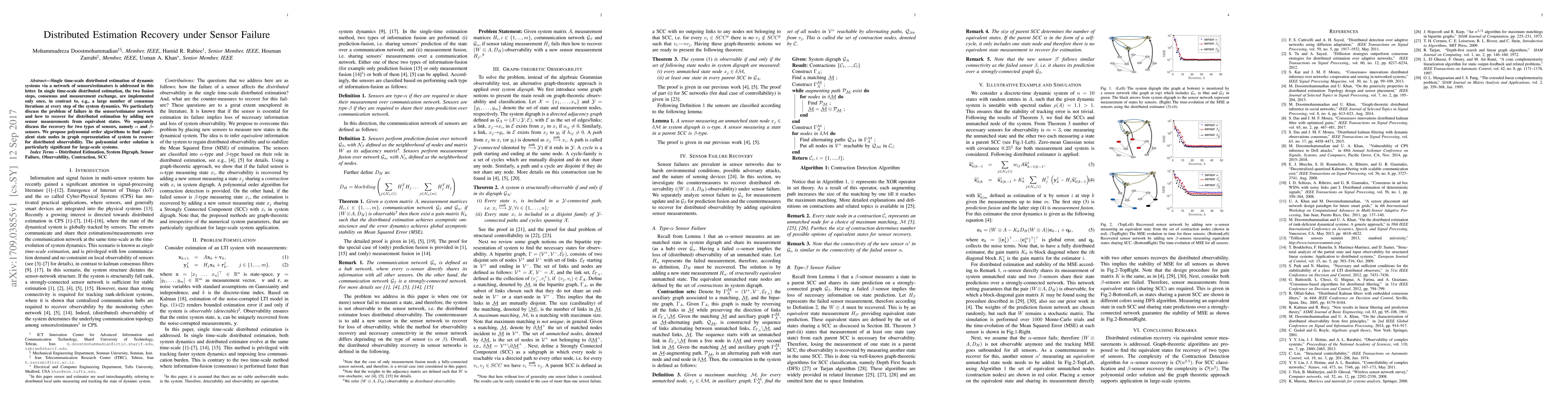 A graph-theoretical approach is proposed to find equivalent states for sensor recovery in distributed estimation.
