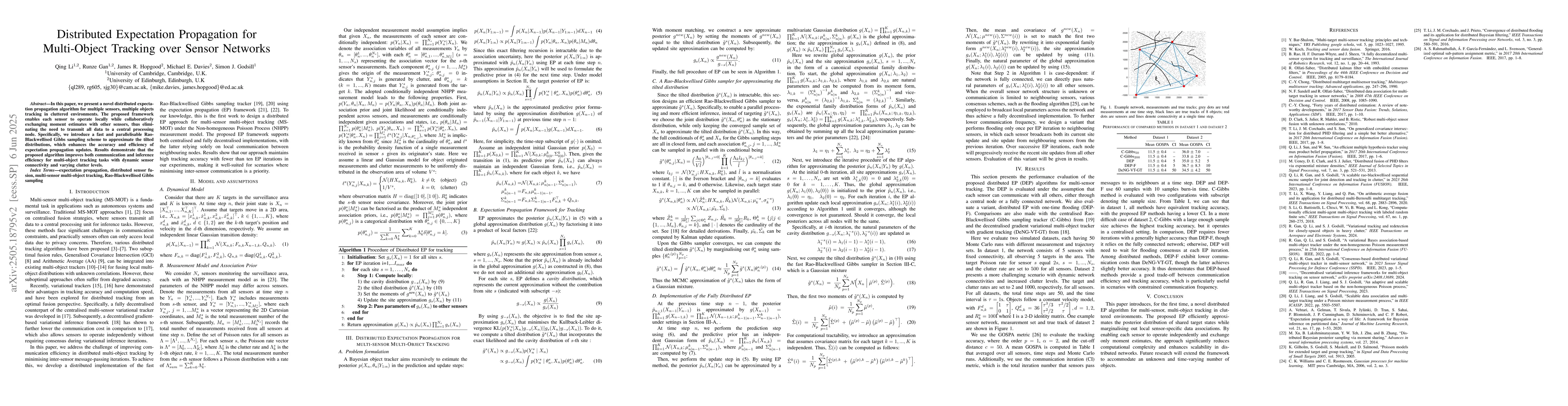 The research introduces a distributed expectation propagation algorithm for multi-object tracking using multiple sensors in cluttered environments, employing local operations with collaborative exchange of moment estimates, and a Rao-Blackwellised Gibbs sampling scheme for efficient approximation of tilted distributions.