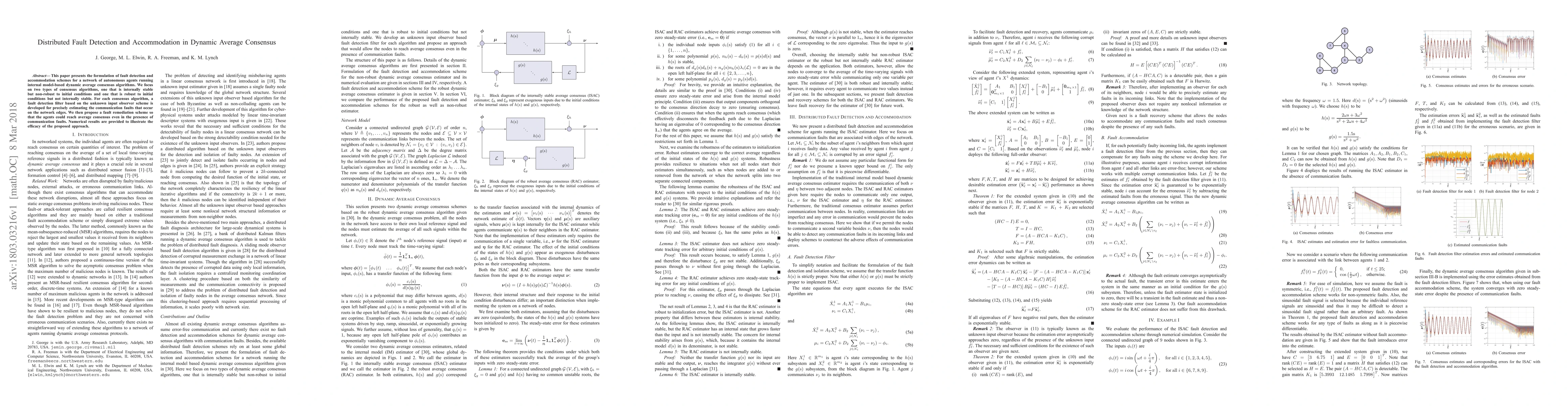 This paper develops fault detection and accommodation schemes for autonomous agents using dynamic average consensus algorithms, proposing fault detection filters based on unknown input observers and fault remediation strategies to maintain consensus despite communication faults.