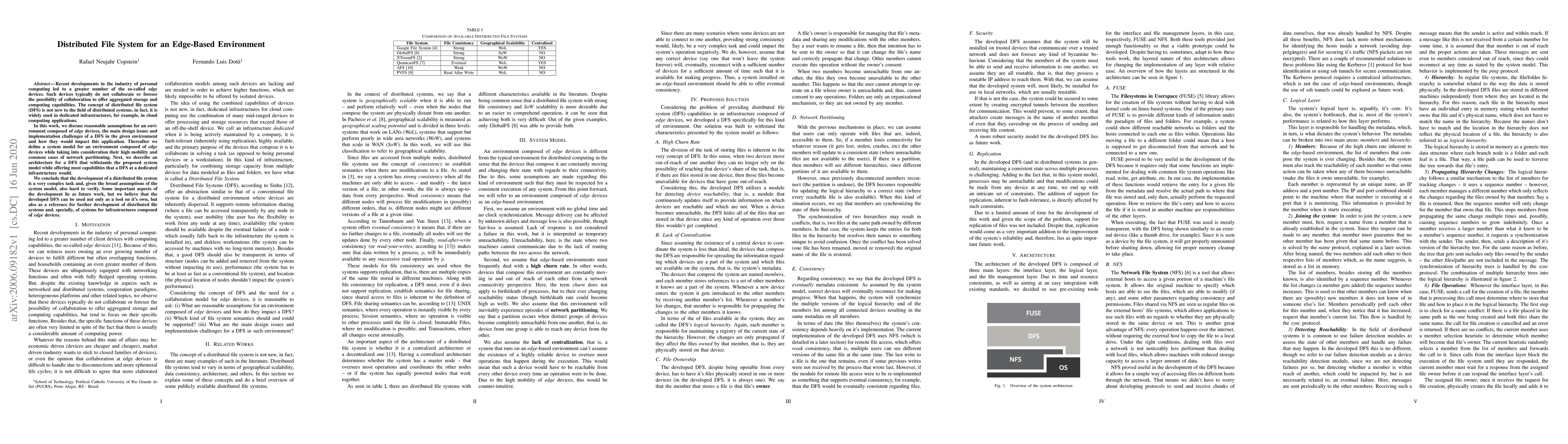 This paper explores the design and implementation of a distributed file system tailored for edge-based environments, addressing the unique challenges posed by edge devices' mobility and network partitioning. The proposed system model and architecture aim to offer robust capabilities similar to those found in cloud-based DFSs, highlighting the complexity and verification difficulties inherent in such development.