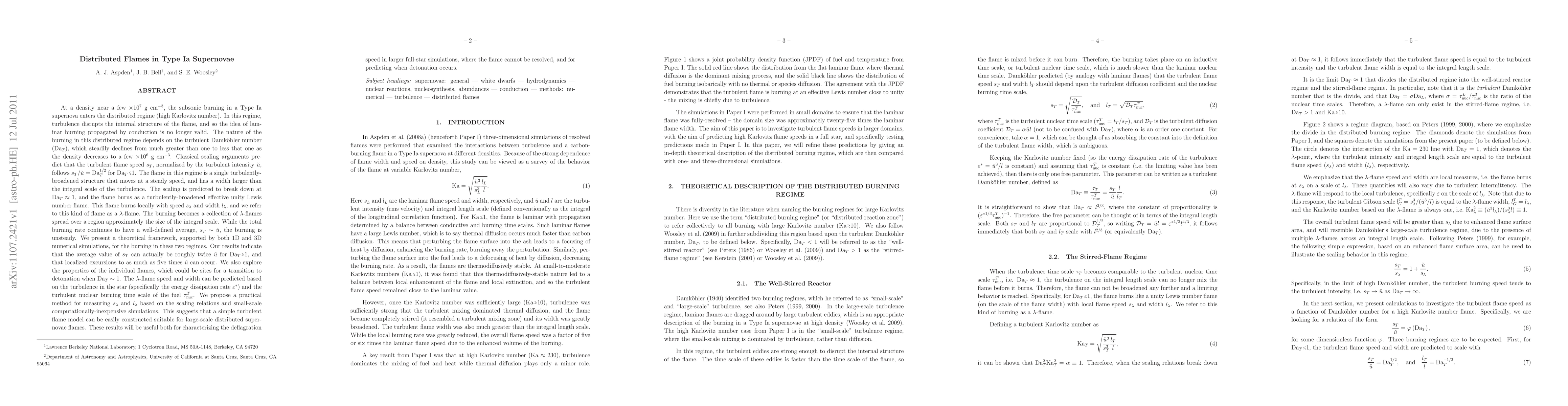 In the distributed burning regime, turbulence disrupts the internal structure of the flame, and so the idea of laminar burning propagated by conduction is no longer valid. The nature of the burning depends on the turbulent Damkohler number (Da), which steadily declines from much greater than one to less that one as the density decreases to a few 10^6 g/cc. Scaling arguments predict that the turbulent flame speed s, normalized by the turbulent intensity u, follows s/u=Da^1/2 for Da<1. The flame in this regime is a single turbulently-broadened structure that moves at a steady speed, and has a width larger than the integral scale of the turbulence. The scaling is predicted to break down at Da=1, and the flame burns as a turbulently-broadened effective unity Lewis number flame. We refer to this kind of flame as a lambda-flame. The burning becomes a collection of lambda-flames spread over a region approximately the size of the integral scale. While the total burning rate continues to have a well-defined average, s_{T} ~ u, the burning is unsteady. We present a theoretical framework, supported by both 1D and 3D numerical simulations, for the burning in these two regimes. Our results indicate that the average value of s can actually be roughly twice u for Da>1, and that localized excursions to as much as five times u can occur. The lambda-flame speed and width can be predicted based on the turbulence in the star and the turbulent nuclear burning time scale of the fuel. We propose a practical method for measuring these based on the scaling relations and small-scale computationally-inexpensive simulations. This suggests that a simple turbulent flame model can be easily constructed suitable for large-scale distributed supernovae flames.