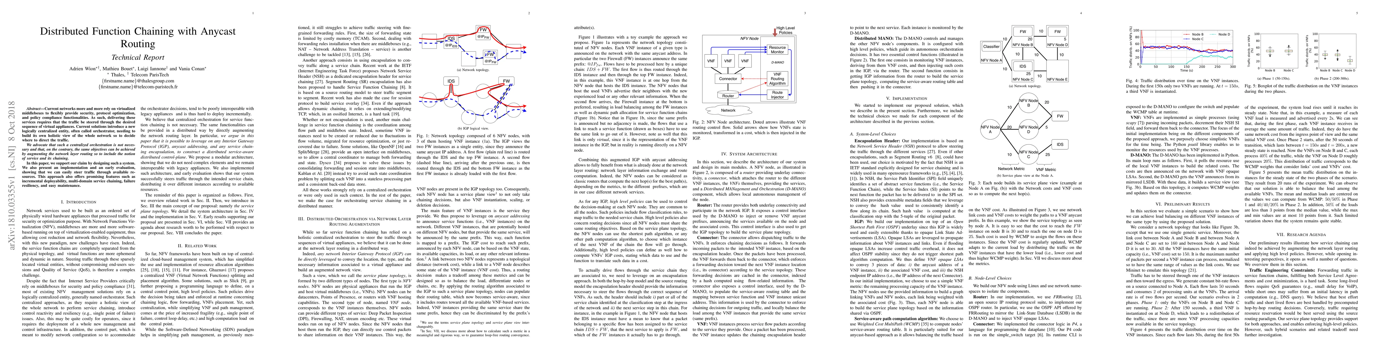 Current networks more and more rely on virtualized middleboxes to flexibly provide security, protocol optimization, and policy compliance functionalities. As such, delivering these services requires that the traffic be steered through the desired sequence of virtual appliances. Current solutions introduce a new logically centralized entity, often called orchestrator, needing to build its own holistic view of the whole network so to decide where to direct the traffic. We advocate that such a centralized orchestration is not necessary and that, on the contrary, the same objectives can be achieved by augmenting the network layer routing so to include the notion of service and its chaining. In this paper, we support our claim by designing such a system. We also present an implementation and an early evaluation, showing that we can easily steer traffic through available resources. This approach also offers promising features such as incremental deployability, multi-domain service chaining, failure resiliency, and easy maintenance.
