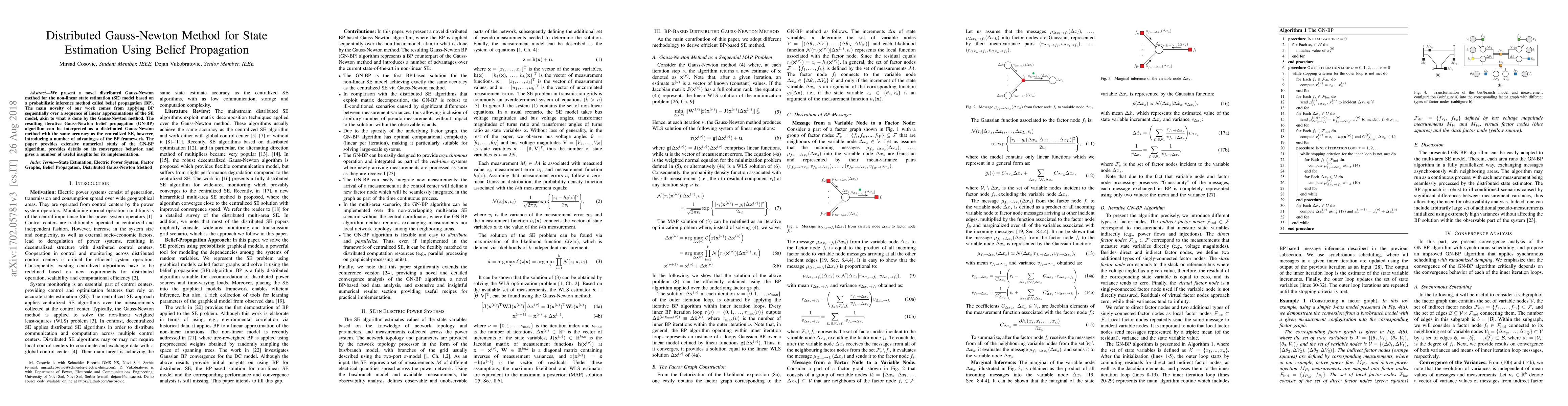 This paper introduces a distributed Gauss-Newton method for non-linear state estimation using belief propagation, termed GN-BP, which iteratively approximates the state estimation model. The GN-BP algorithm offers a distributed approach with the same accuracy as centralized methods while leveraging the advantages of belief propagation.