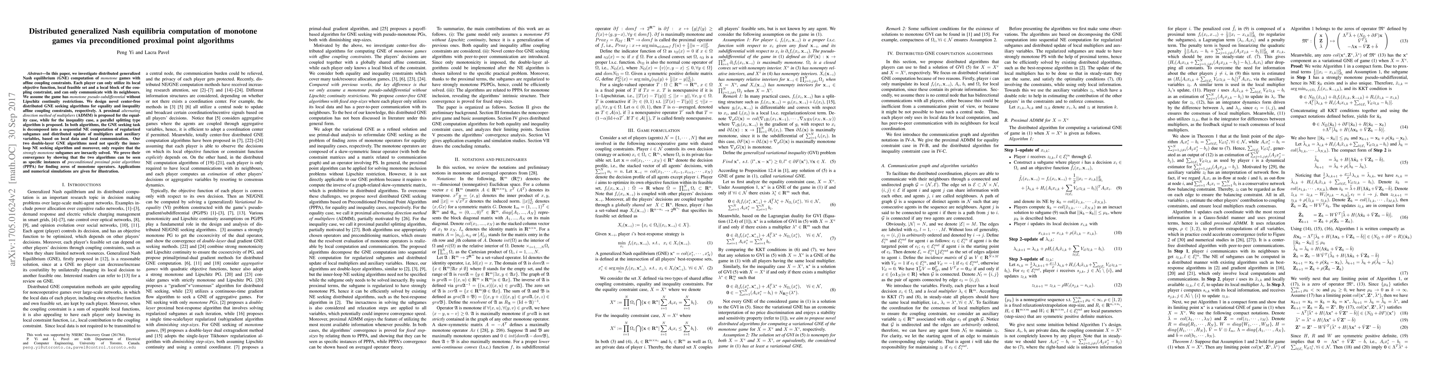 This paper presents two novel algorithms for computing generalized Nash equilibria in distributed monotone games with affine coupling constraints, utilizing a preconditioned proximal point algorithm framework.