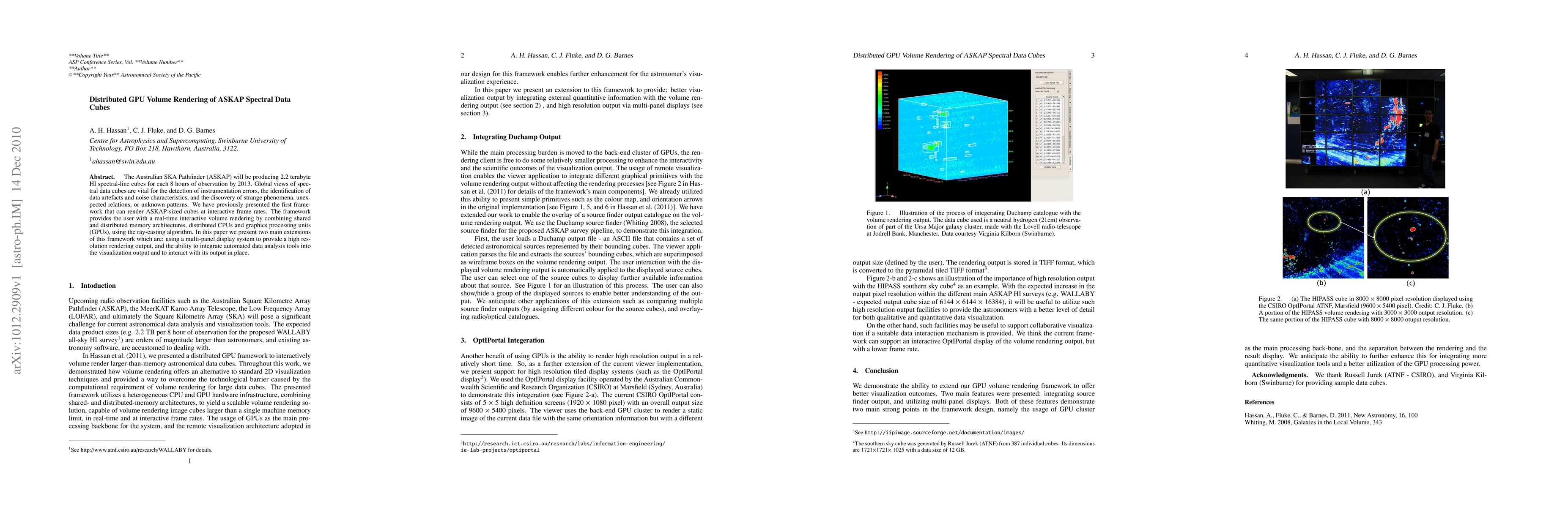This paper extends a framework for real-time interactive volume rendering of large ASKAP spectral data cubes, incorporating a multi-panel display for high-resolution outputs and integrating automated data analysis tools directly into the visualization for immediate interaction.