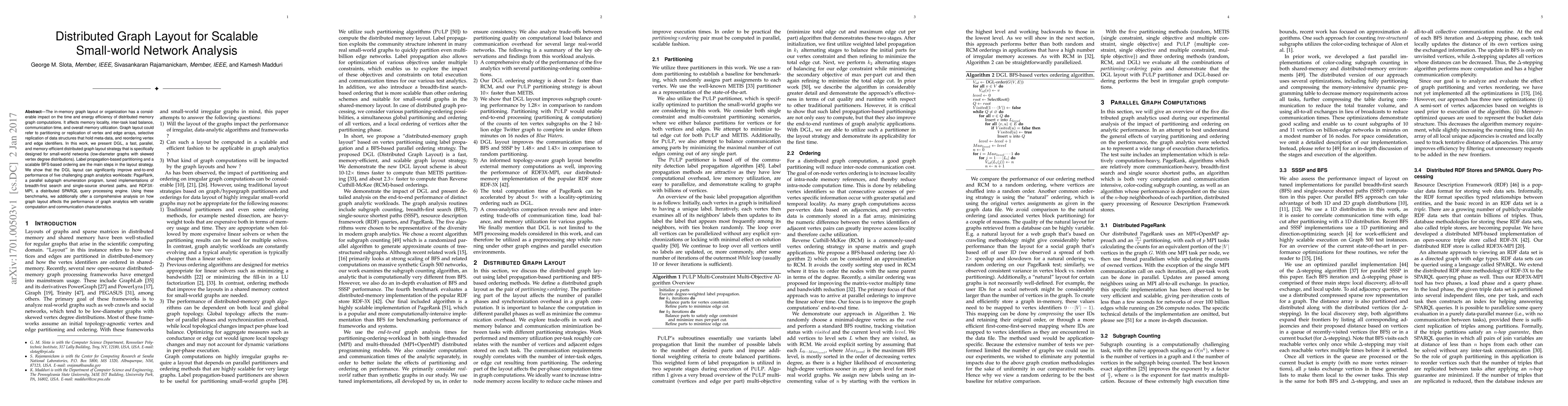 The in-memory graph layout or organization has a considerable impact on the time and energy efficiency of distributed memory graph computations. It affects memory locality, inter-task load balance, communication time, and overall memory utilization. Graph layout could refer to partitioning or replication of vertex and edge arrays, selective replication of data structures that hold meta-data, and reordering vertex and edge identifiers. In this work, we present DGL, a fast, parallel, and memory-efficient distributed graph layout strategy that is specifically designed for small-world networks (low-diameter graphs with skewed vertex degree distributions). Label propagation-based partitioning and a scalable BFS-based ordering are the main steps in the layout strategy. We show that the DGL layout can significantly improve end-to-end performance of five challenging graph analytics workloads: PageRank, a parallel subgraph enumeration program, tuned implementations of breadth-first search and single-source shortest paths, and RDF3X-MPI, a distributed SPARQL query processing engine. Using these benchmarks, we additionally offer a comprehensive analysis on how graph layout affects the performance of graph analytics with variable computation and communication characteristics.