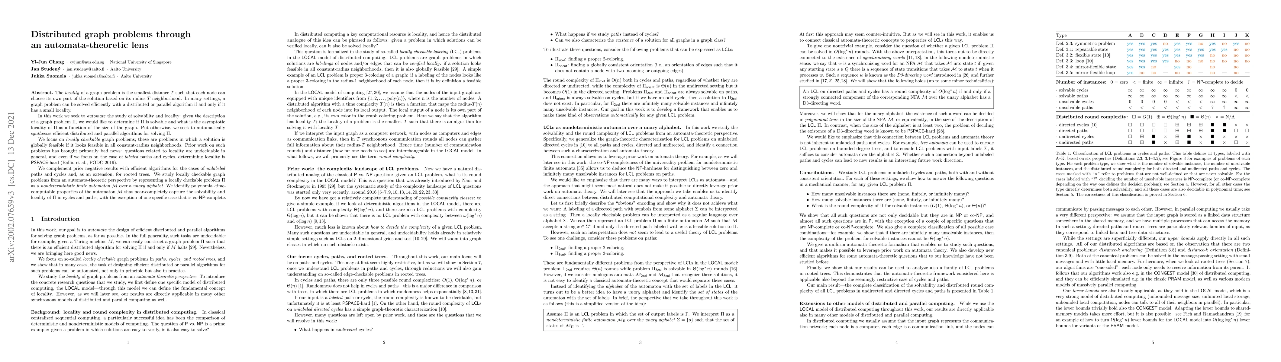 This paper explores the automation of determining solvability and locality for distributed graph problems, focusing on locally checkable problems using an automata-theoretic approach. It presents efficient algorithms for unlabeled paths, cycles, and rooted trees, while identifying polynomial-time computable properties of automata that nearly capture problem solvability and locality.